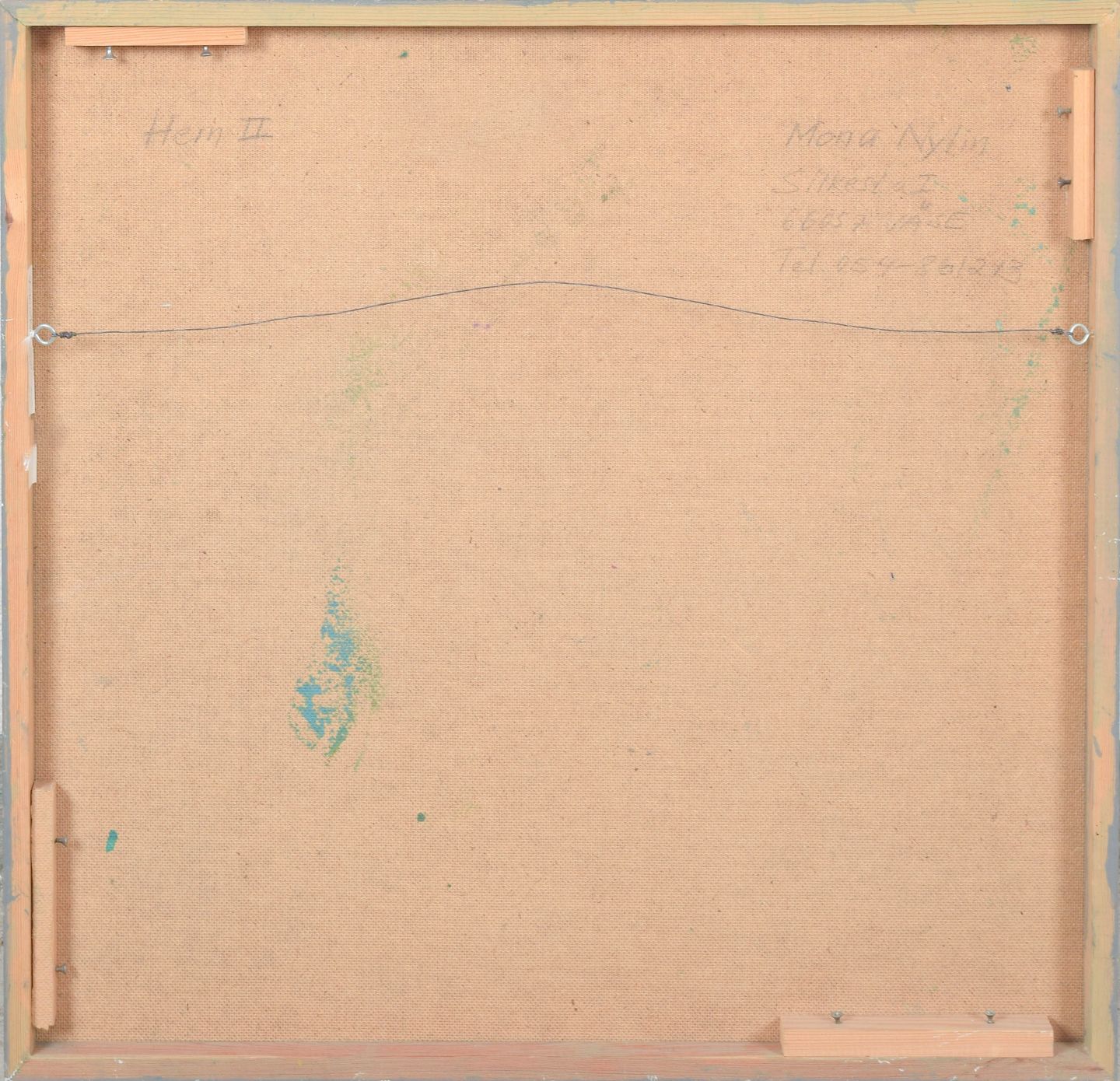 Mona Nylin er en svensk kunstner, der arbejder inden for maleri og har udstillet bredt i både Sverige og internationalt. Hendes billedsprog kredser ofte om abstrakte og stemningsbårne kompositioner, hvor farve og form anvendes til at skabe en sanselig og meditativ oplevelse. Hun er repræsenteret i blandt andet Värmlands Museum og Statens Kunstfond.