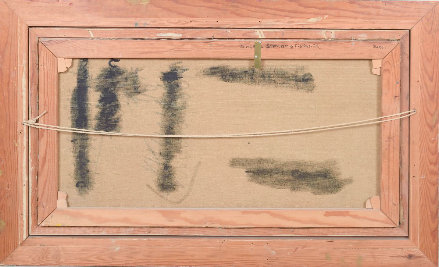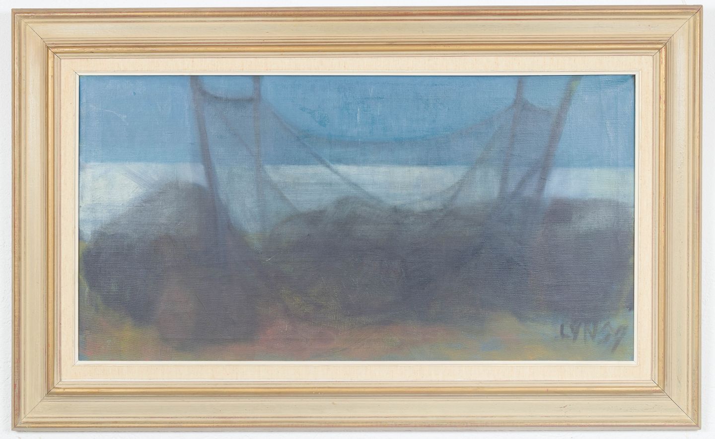 Lars Yngve Nilsson, “Svarta stenar o fiskenät”, olie på lærred, svensk kunstner.