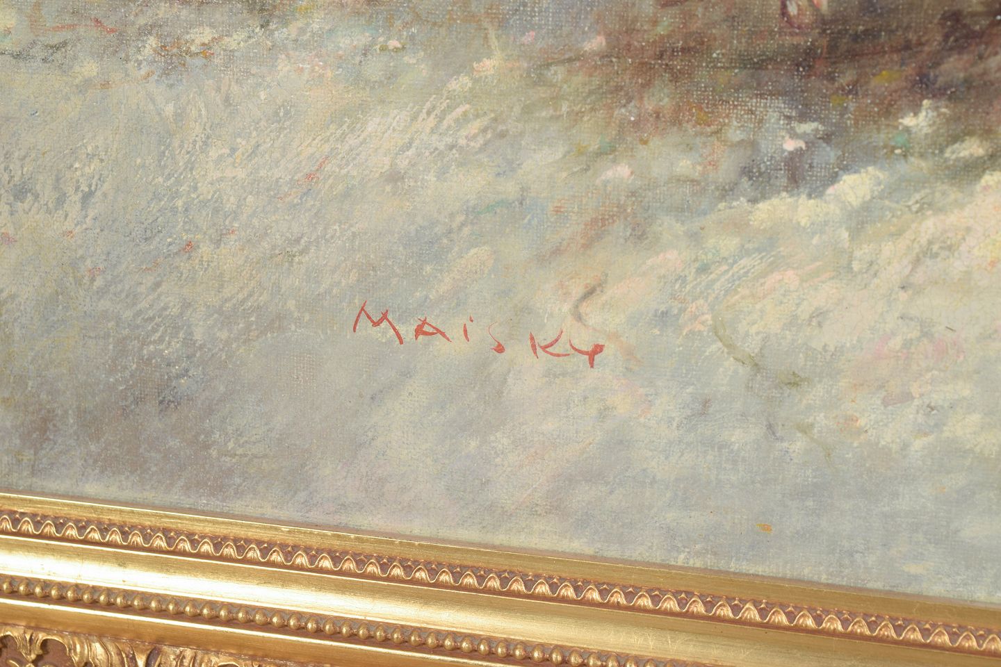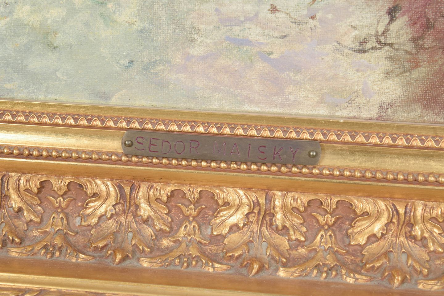 Sedor Maisky (født 1879) var en østrigsk maler kendt for sine figurative og ofte fortællende kompositioner, hvor landskaber og menneskelige aktiviteter indgår i en harmonisk helhed. Hans værker er præget af en let og atmosfærisk penselføring med fokus på lys, bevægelse og stemning, og han arbejdede inden for en tradition, der kombinerer naturalisme med en mere impressionistisk farveholdning.