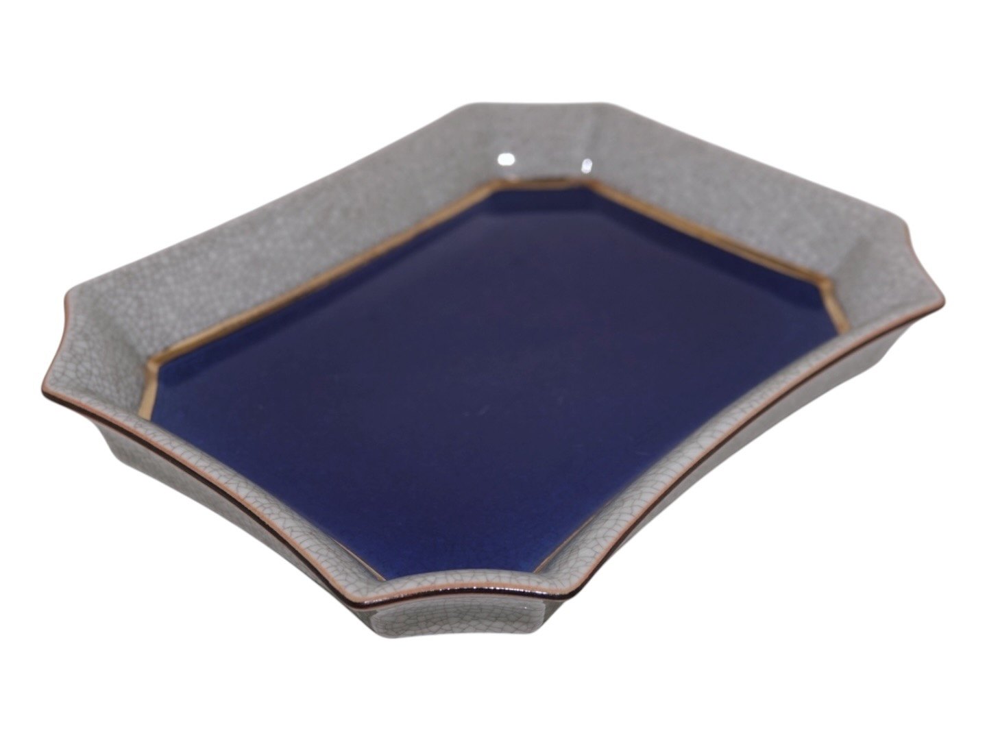 Royal Copenhagen Craquele (Krakele), lille mørkeblå bakke.