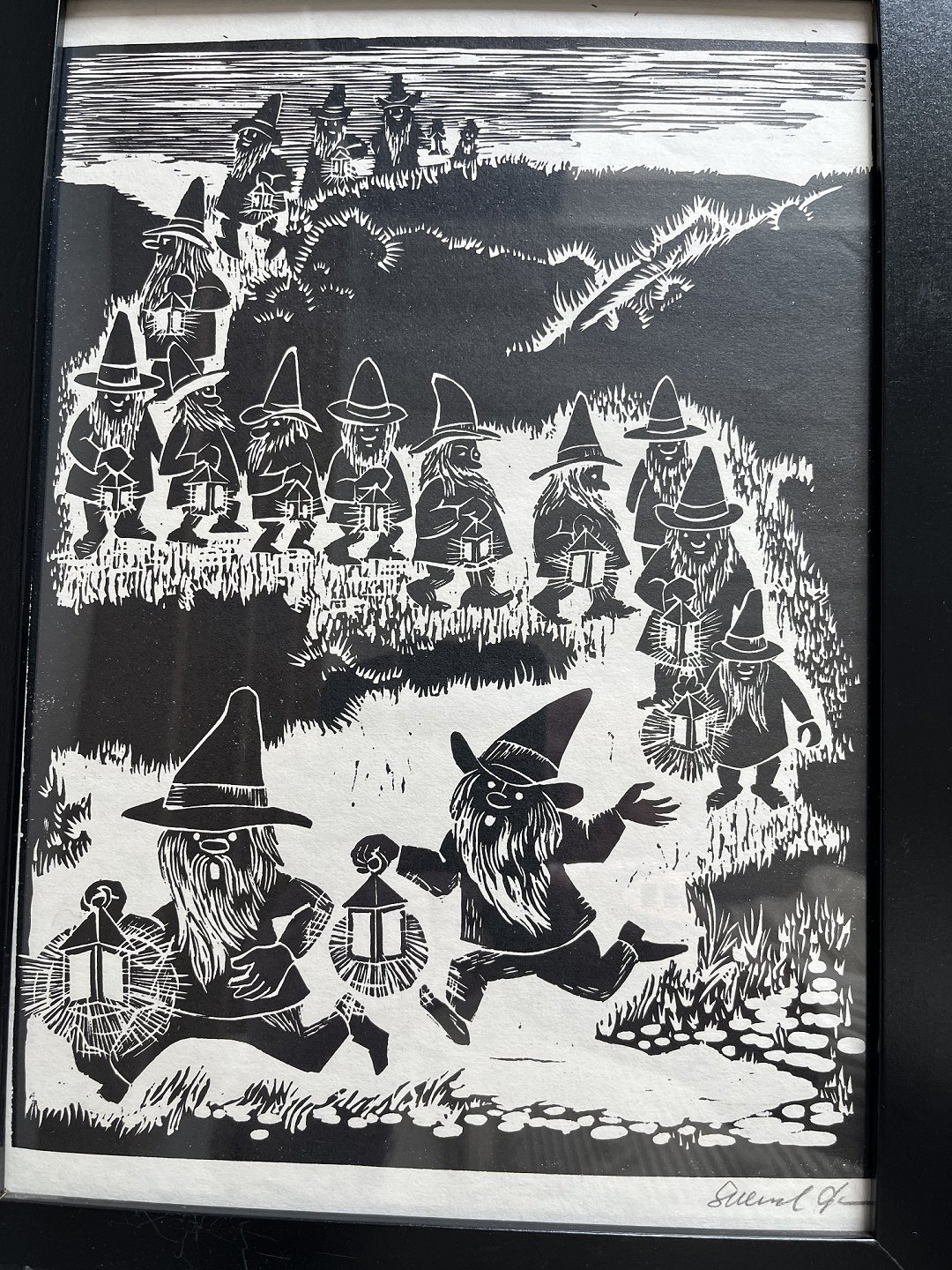 2 kompositioner med Trolde, nisser, træer, dyr mm.