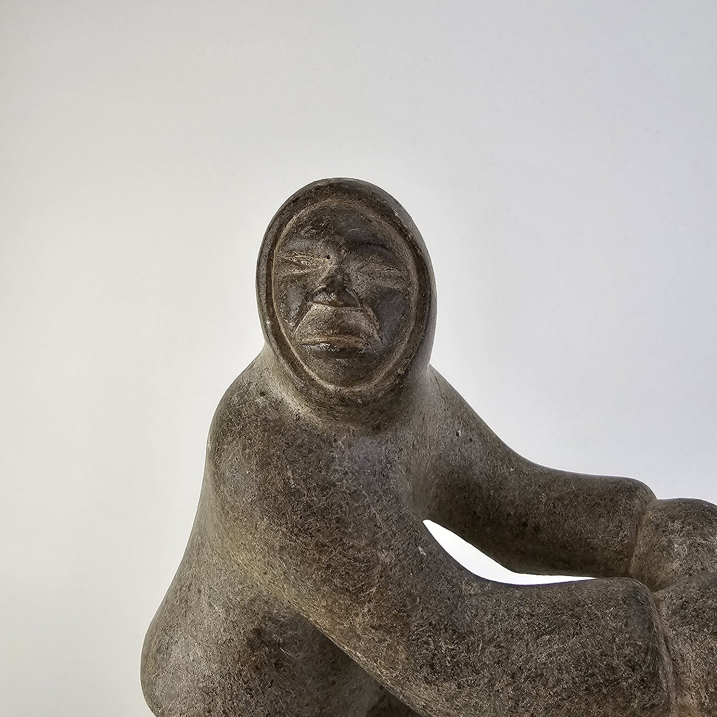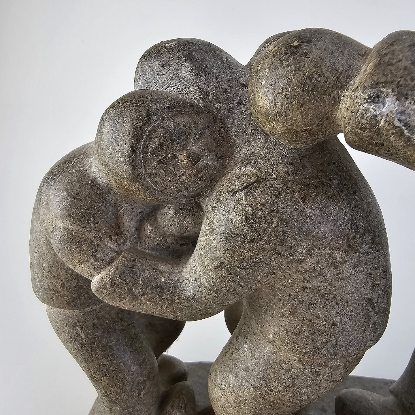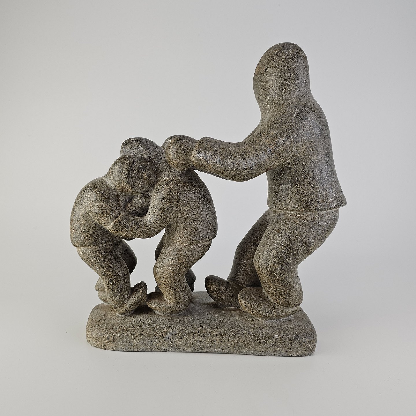 Grøndlandsk figur i fedtsten med motiv af en voksen og to børn