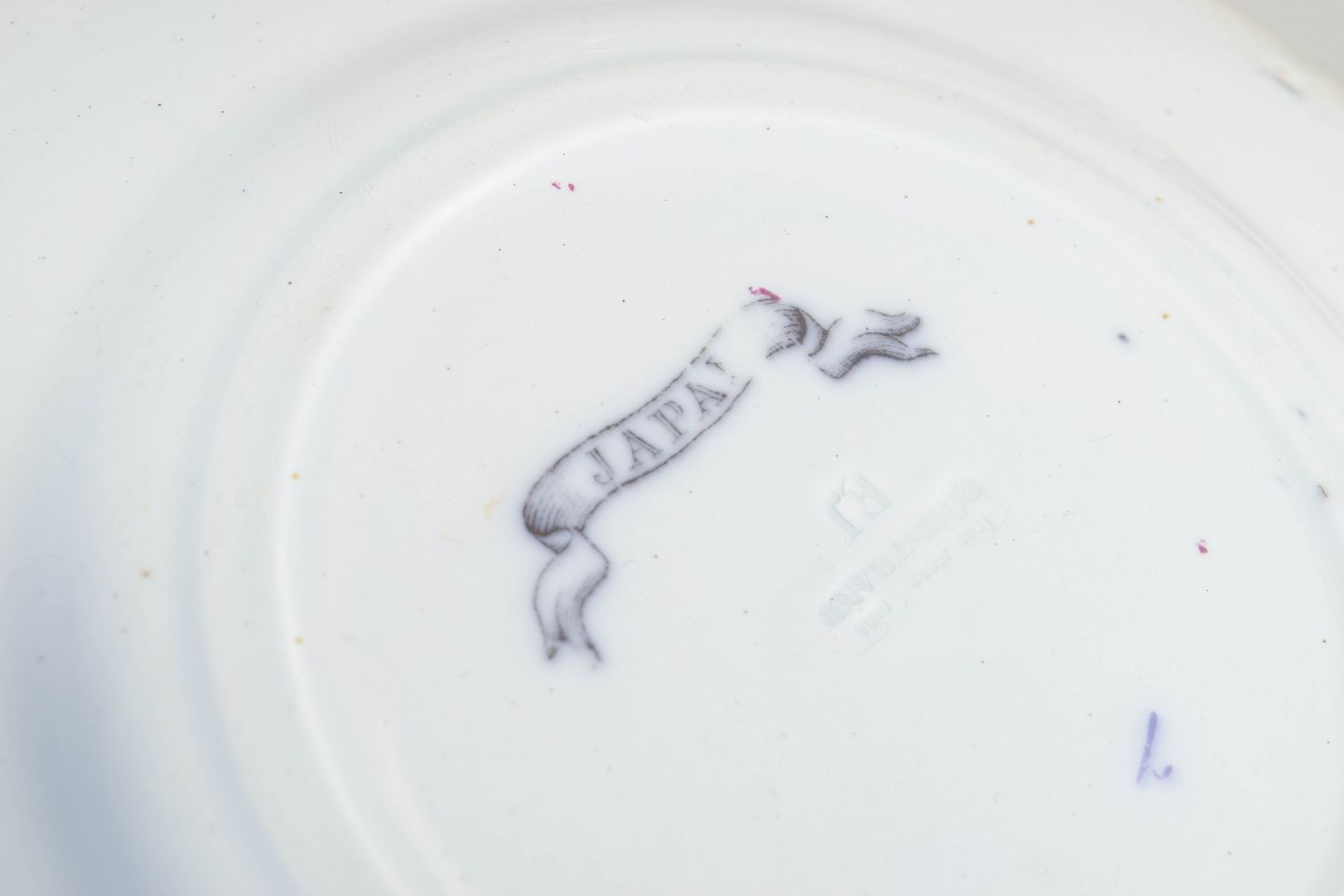 Dekorative tallerkener i fajance med polykrom dekoration i orientalistisk japansk stil med pagodemotiv, bygninger, fugl og blomster. Model Japan, produceret i perioden 1866–1925 og dateret til 1880’erne.