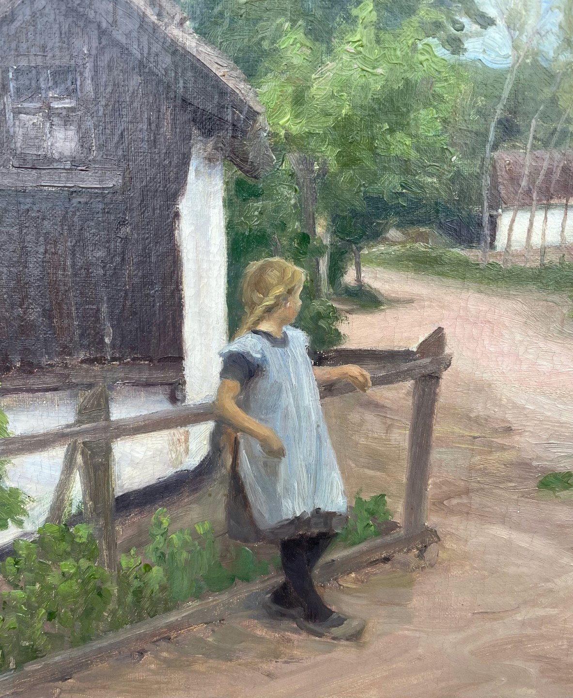 "Parti fra en landsby" Oliemaleri på lærred i forgyldt ramme. Maleriet er netop blevet renset og har fået slut fernis.