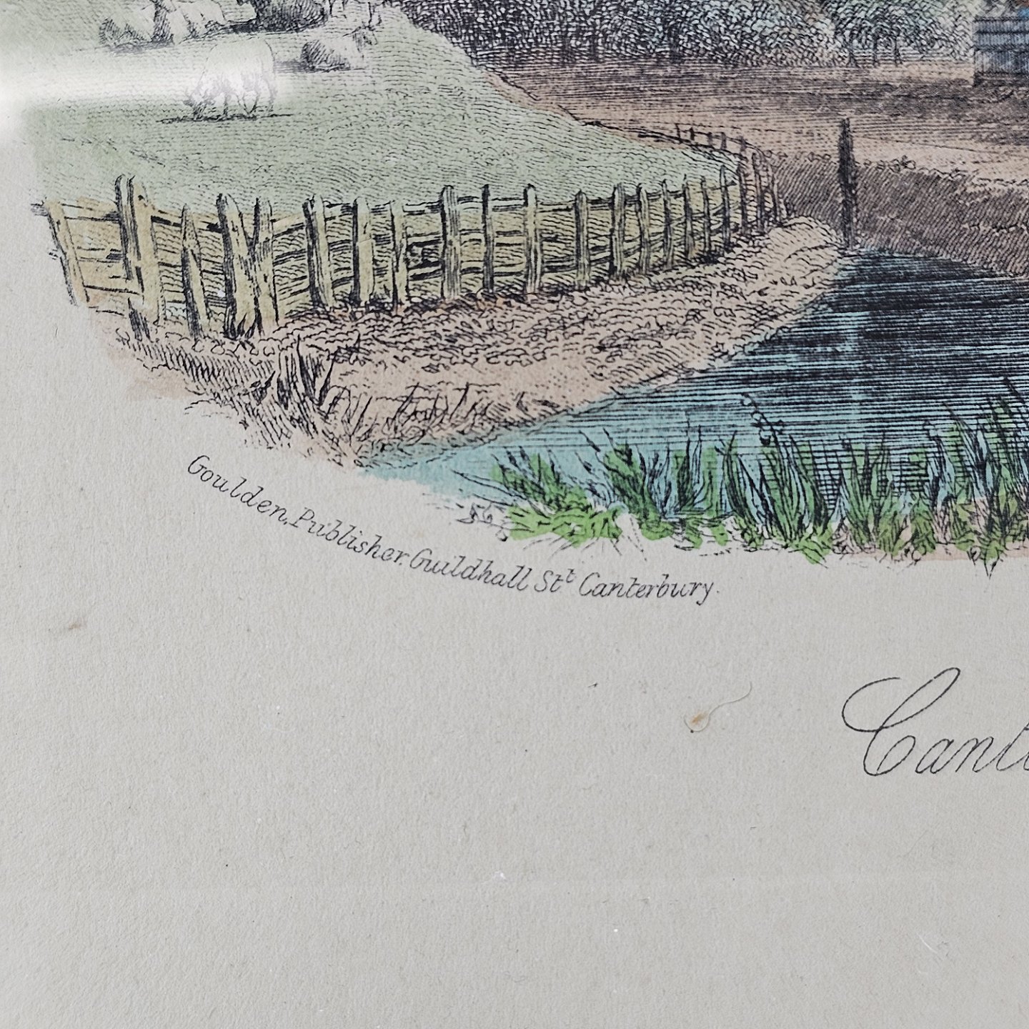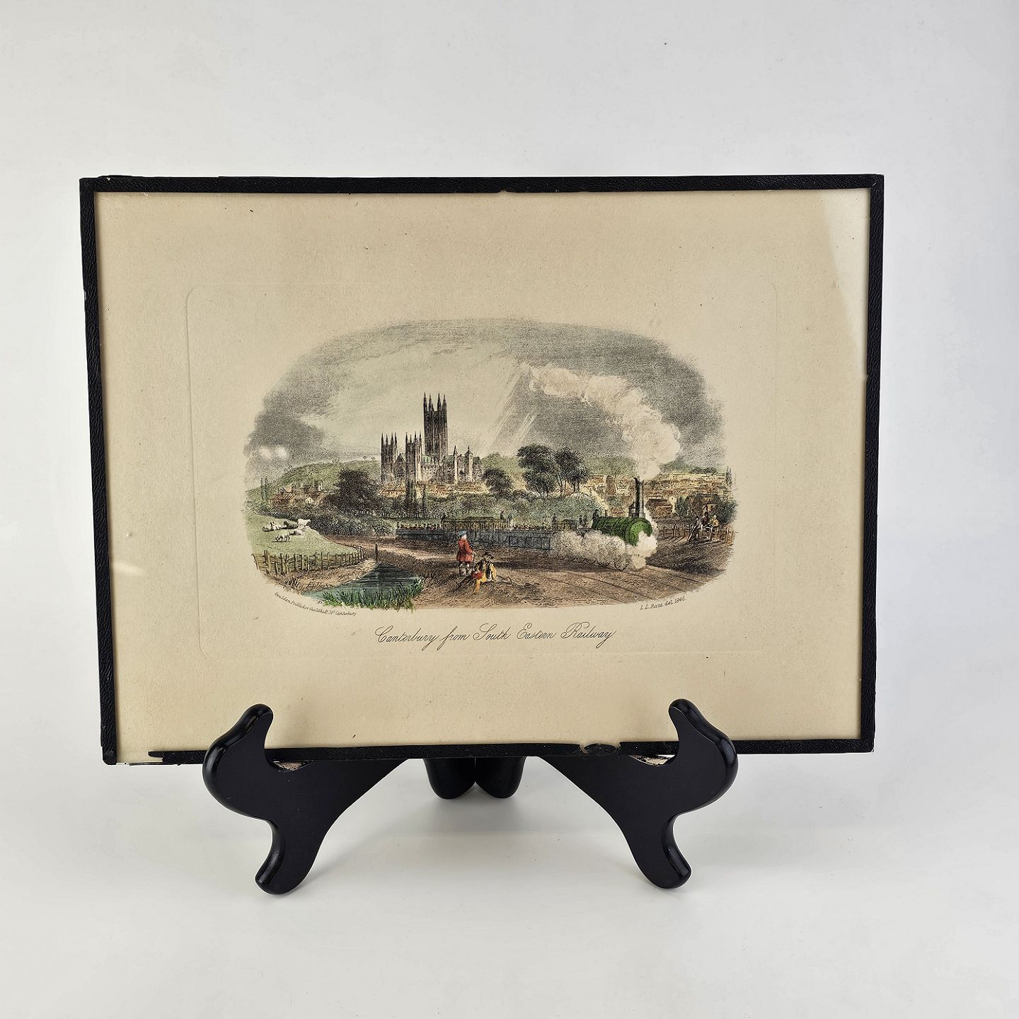 Bogryk på papir med motiv af Canterbury by fra den sydøstlige jernbane, monteret i sort ramme