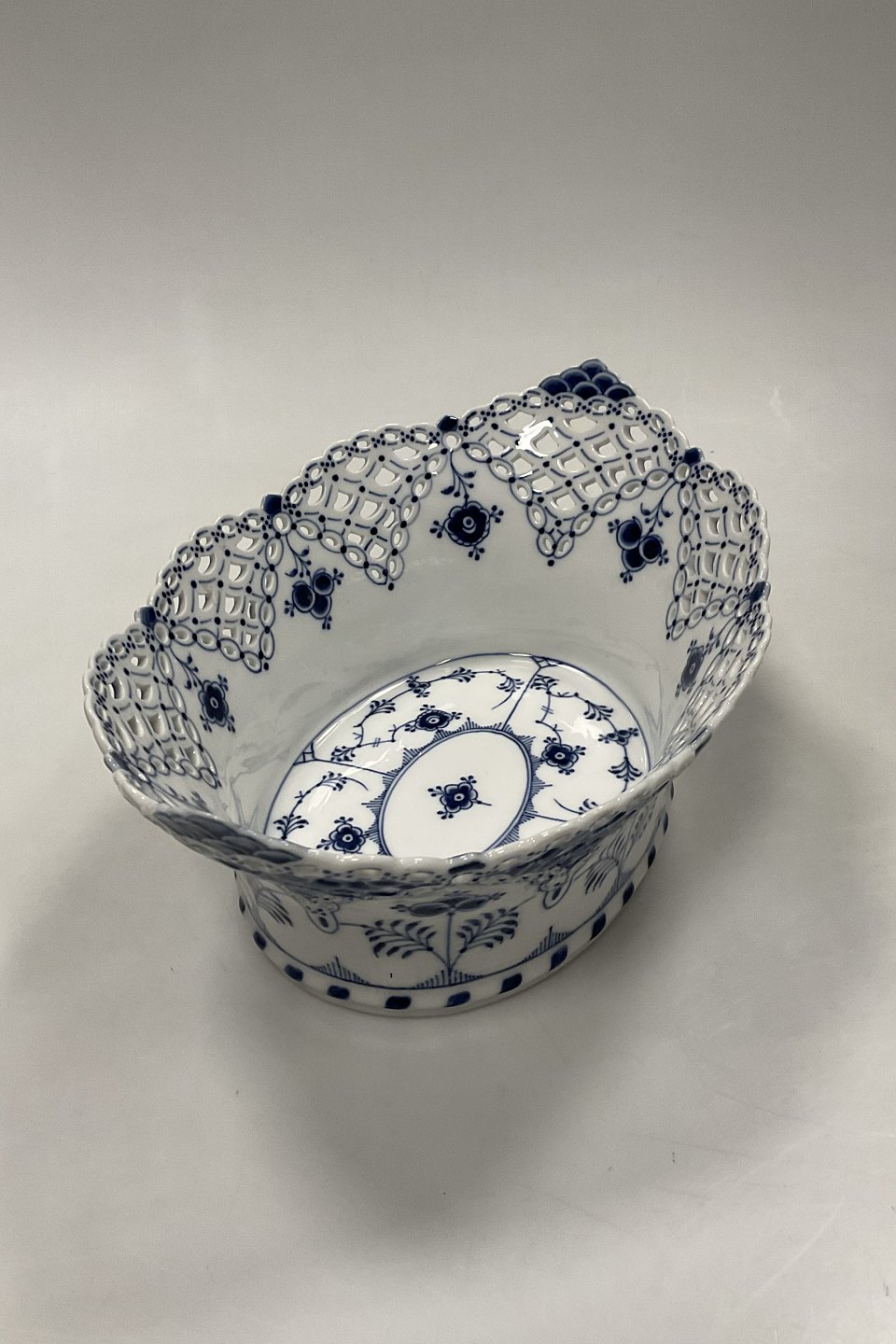 Royal Copenhagen Musselmalet Helblonde Frugtkurv/Oval Skål No. 1059. Modellør Emil Larsen, november 1892.