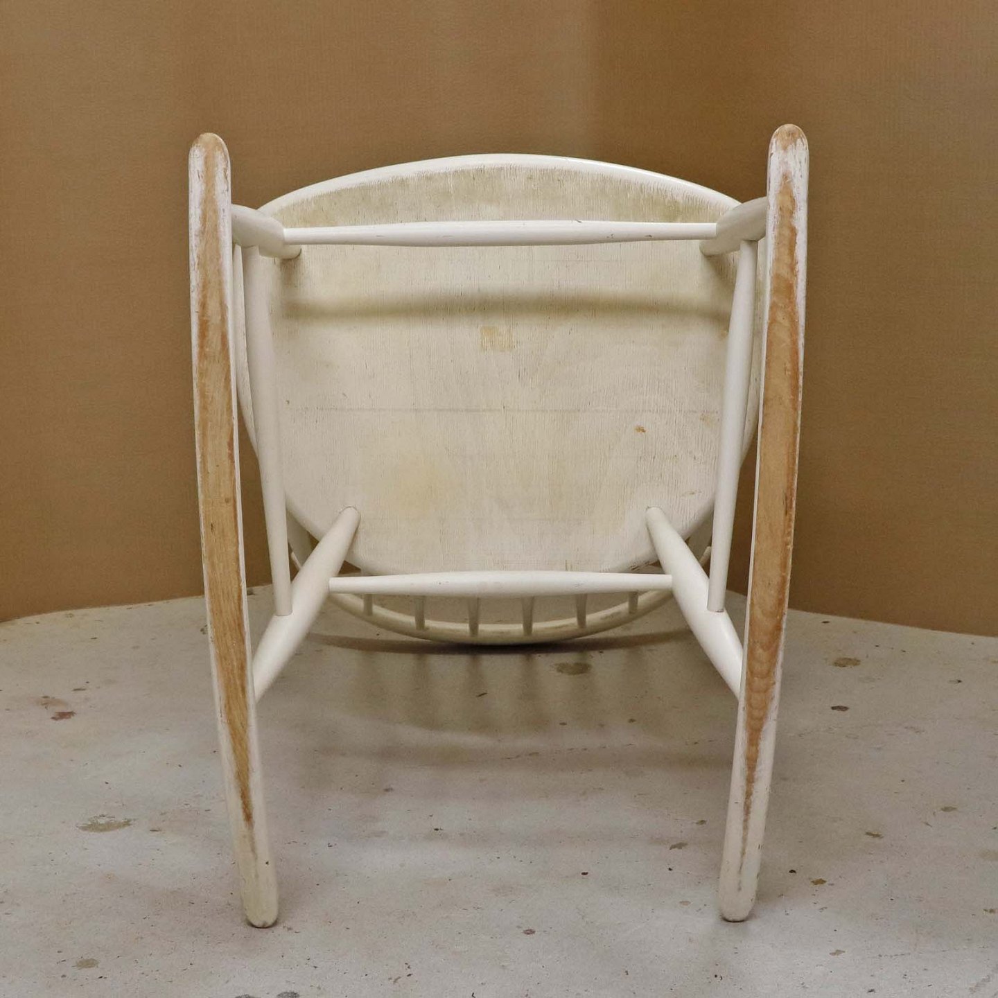 Tremme gyngestol formgivet år 1958 i hvidlakeret træ. Model IW3