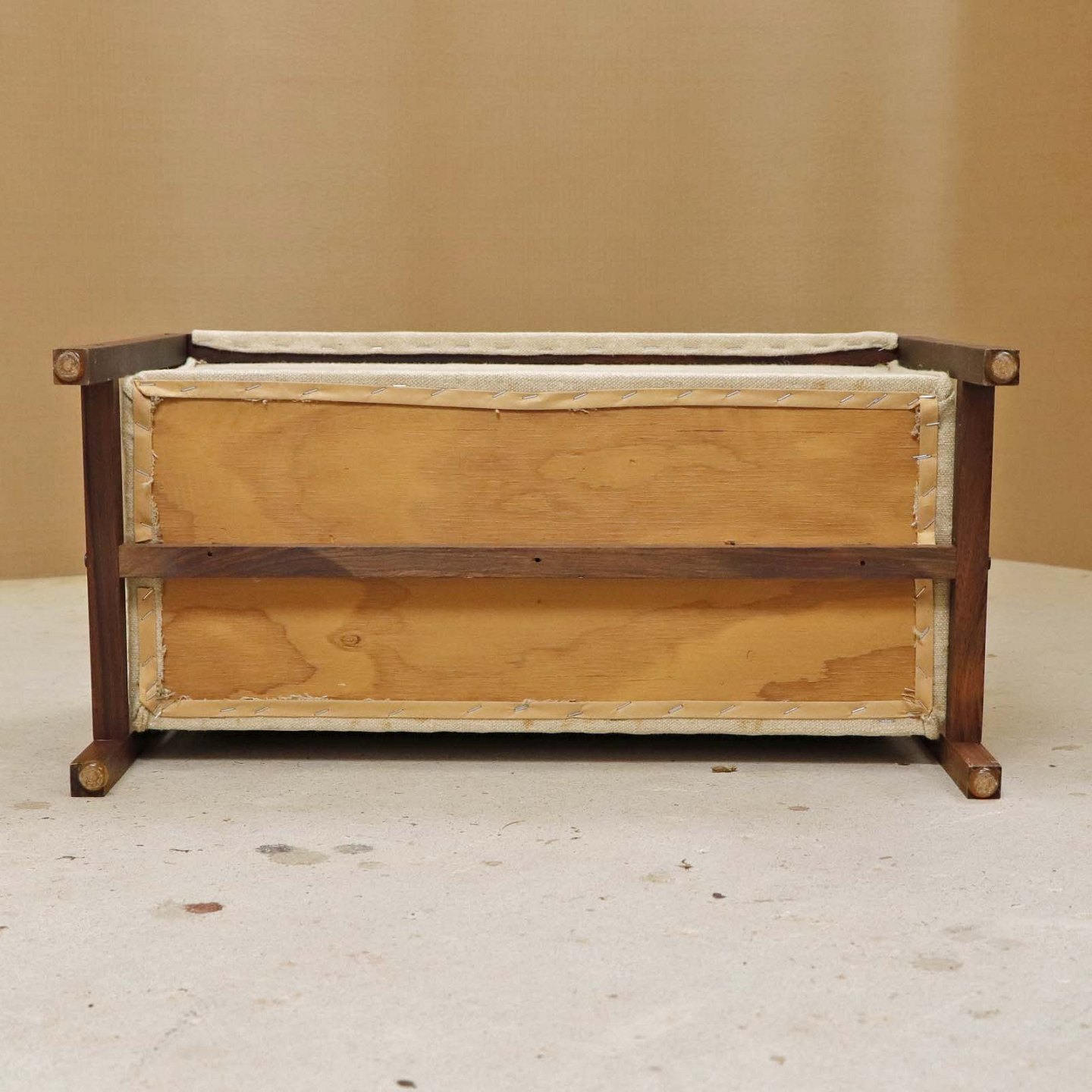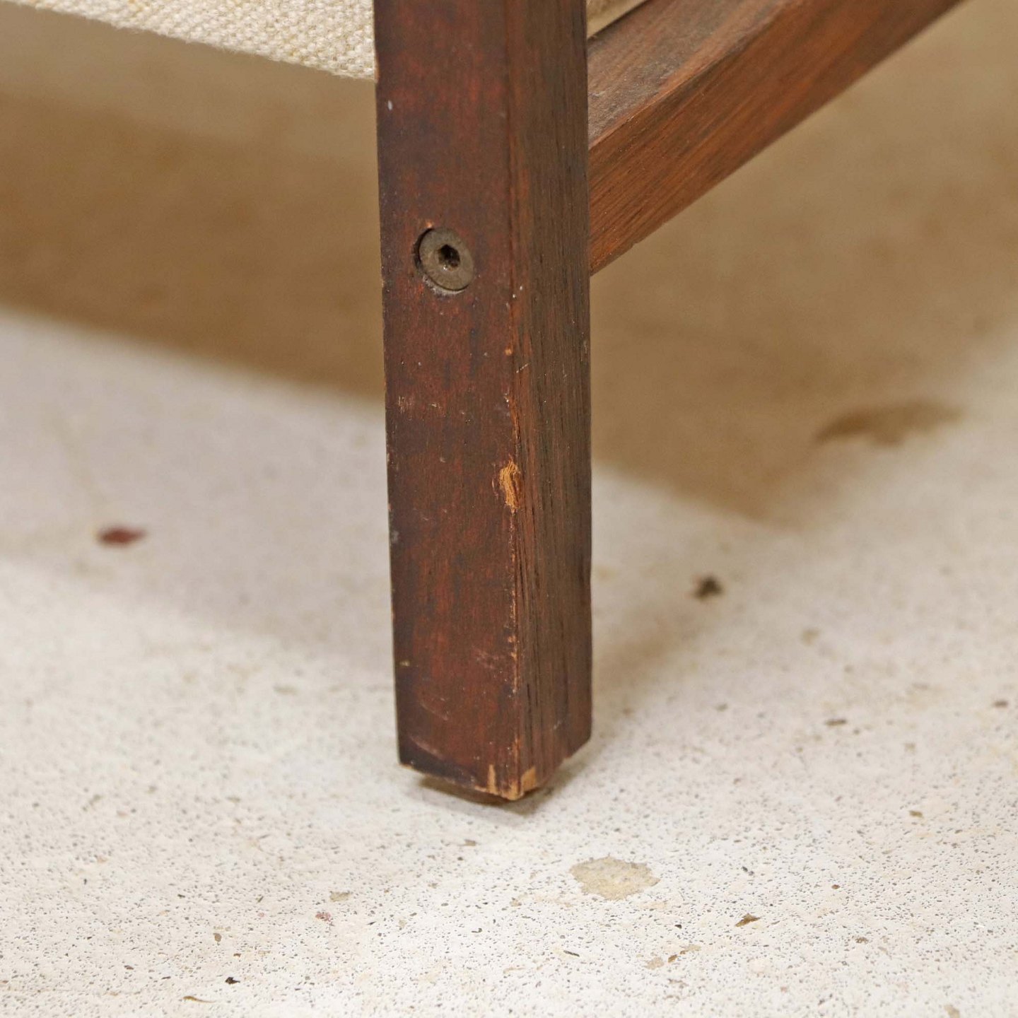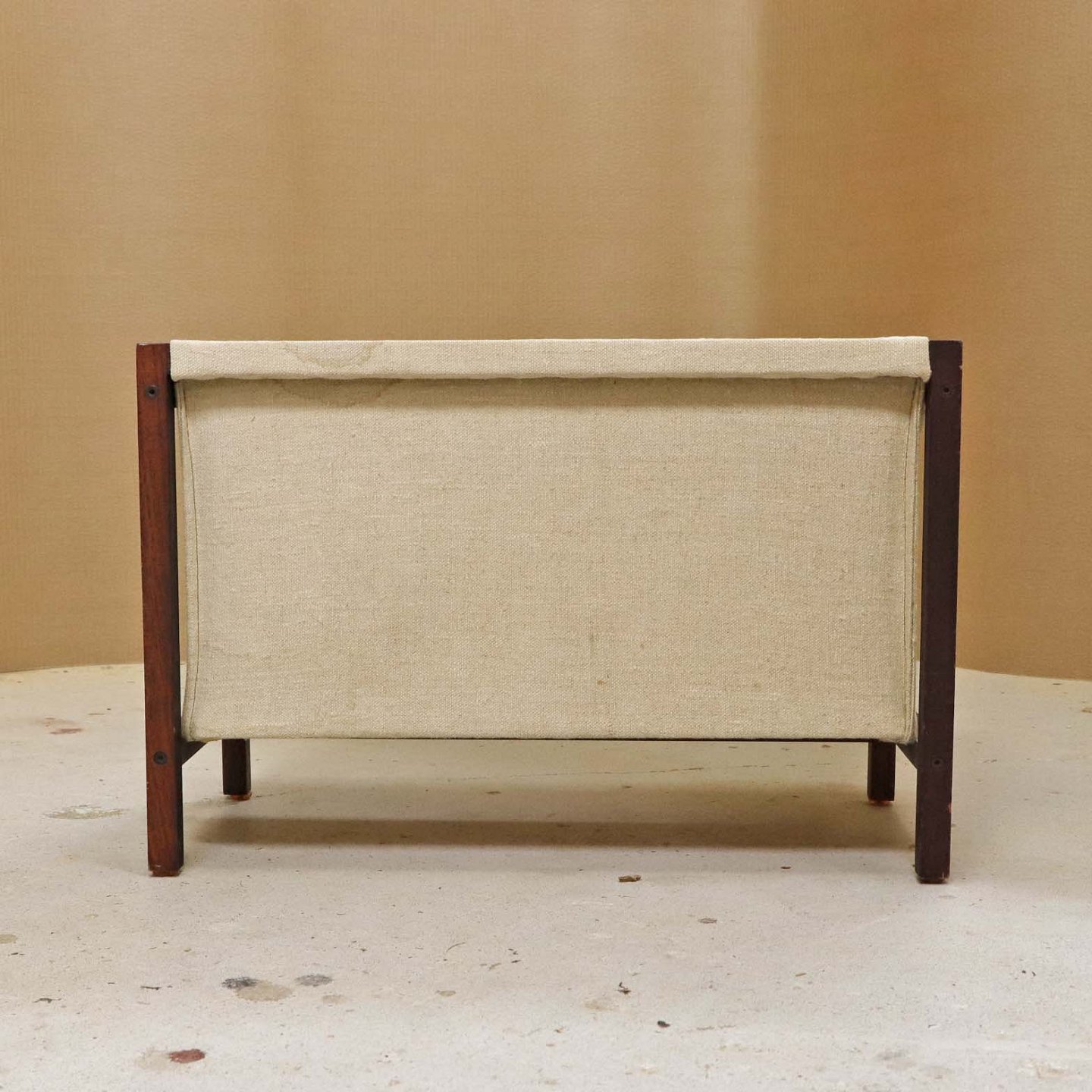 Fremstår med mindre brugsspor på træstellet samt et vandmærke på topkanten af lærredstoffet.