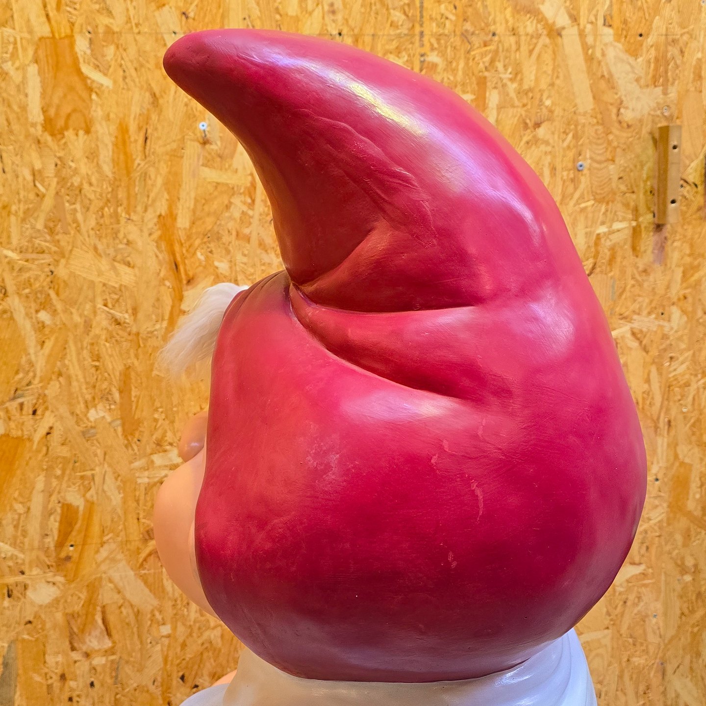 Stor udstillingsmodel i malet glasfiber med motiv af Klarborg nissen Oscar fra åretsnissepar år 2001, som sidder på en træstub. Figuren er fremstillet i et begrænset antal.