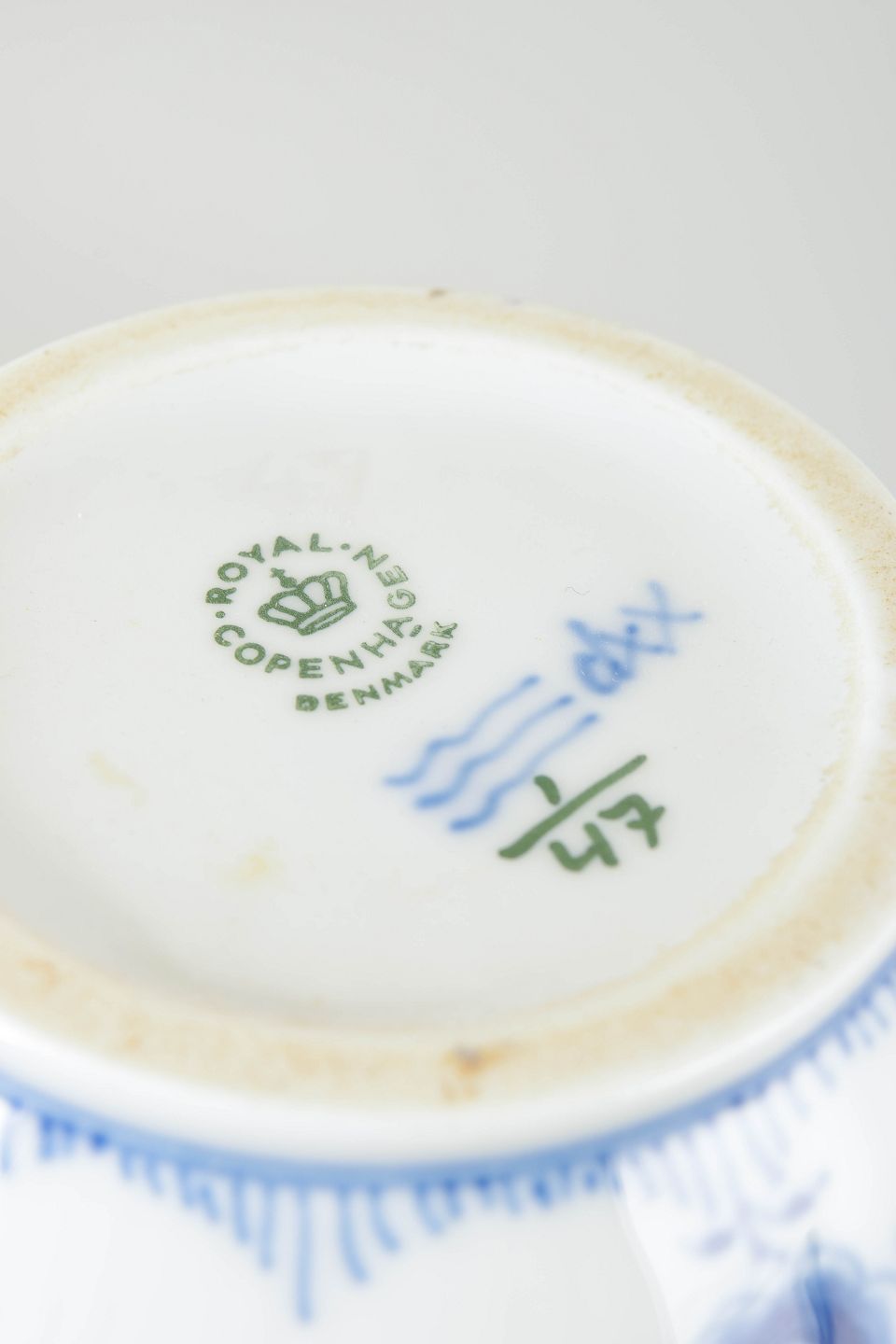 Royal Copenhagen blev grundlagt i 1775 og er kendt verden over for sit håndmalede porcelæn. Musselmalet riflet er fabrikkens mest ikoniske stel, introduceret i slutningen af 1700-tallet og stadig produceret i dag. Hvert stykke er hånddekoreret og repræsenterer en central del af dansk design- og håndværkstradition.