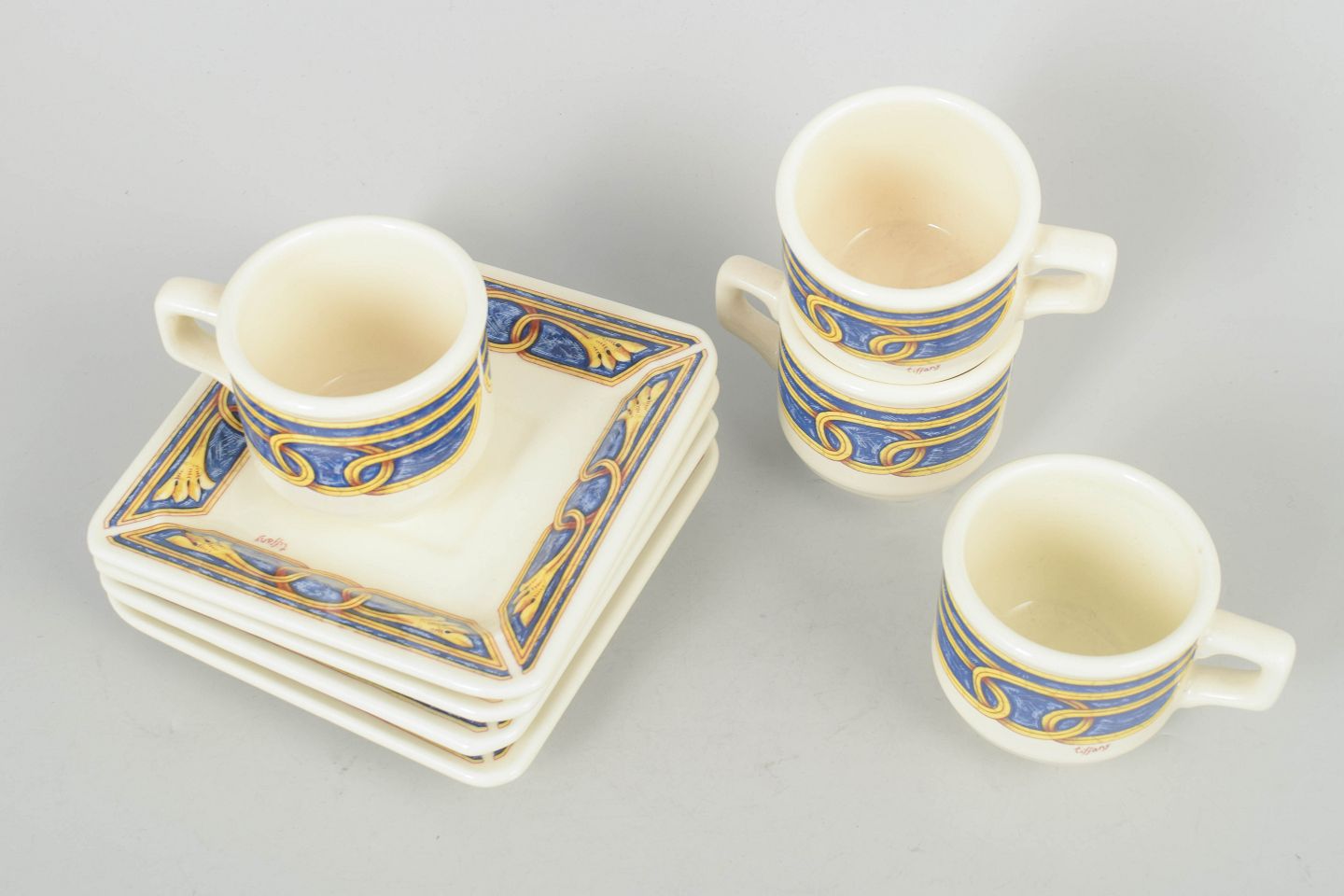 Tiffany Boutique, sæt af fire espressokopper med underkopper.