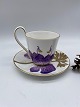 Royal Copenhagen Flora højhanket kop med underkop, motiv med stedmorblomst. ...