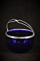 Gammel Candy skål i blåt glas med sølvet kant og hank.