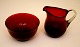 4 danske mælkeskåle I klart glas med blå ombukket kant. Et stk. er solgt.