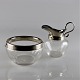 Svend Toxværd, dansk sølvsmed. Kandisskål i blåt kunstglas og tretårnet sølv.