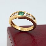 Ring i 18 kt. guld prydet med diamanter og smaragd