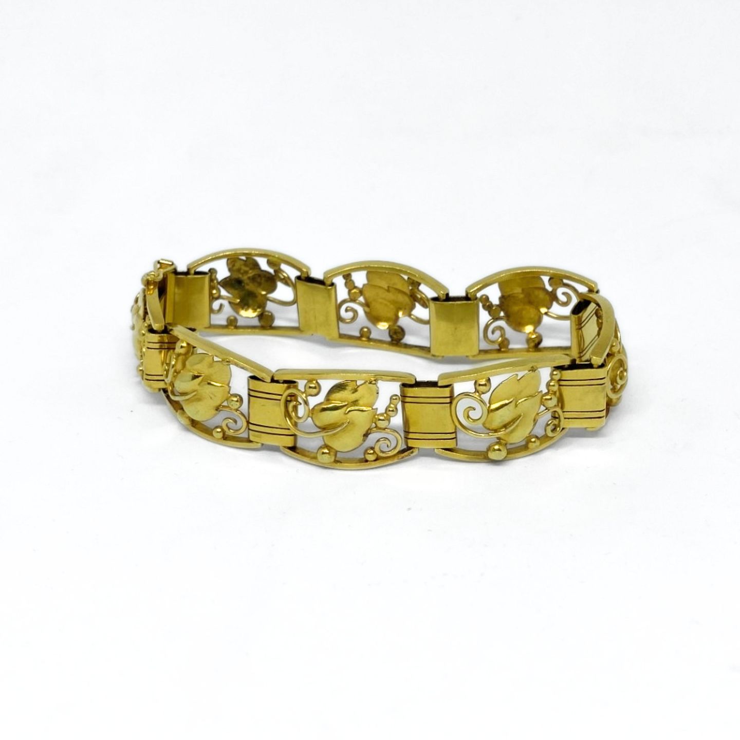Th. Frederiksen; A 14k gold bracelet with floral motif.