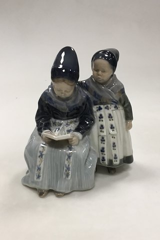 Royal Copenhagen Figur Læsende Amagerpiger No. 1395. Måler 17 cm (6 11/16 in.) og er i god stand. Designet af Lotte Benter
