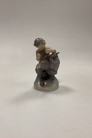 Royal Copenhagen Figurine Faun with Owl No. 2107. Designed by Chr. Thomsen in 1920.