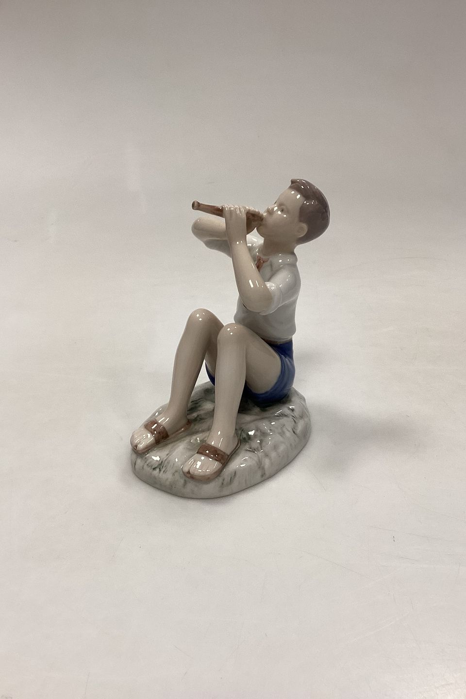 Bing and Grondahl Figurine No. 2344 - Boy playing flute. Designed by Vita Thymann. 1st Quality. In good condition. Measures 15 cm / 5.90 in.