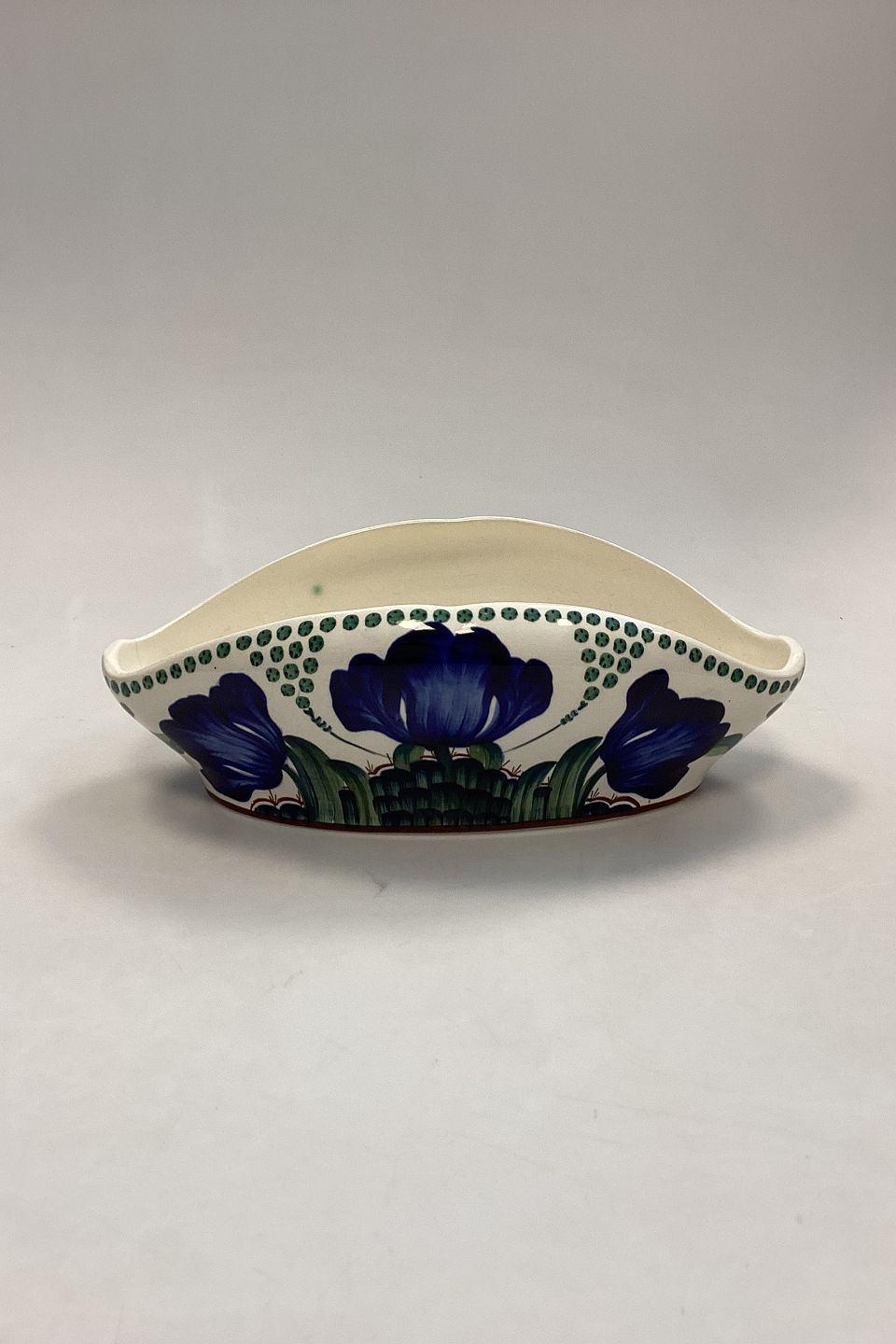 Aluminia Jardiniere No. 223/115. Måler 30 cm x 10,5 cm / 11,81 in. x 4,13 in. Hårrevne for enden øverst og misfarvet plet inderst (se fotos)