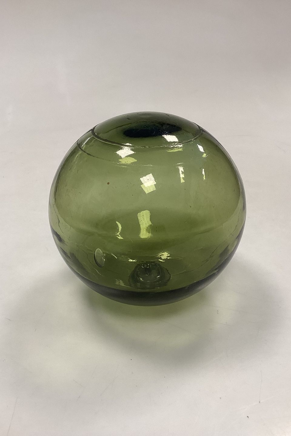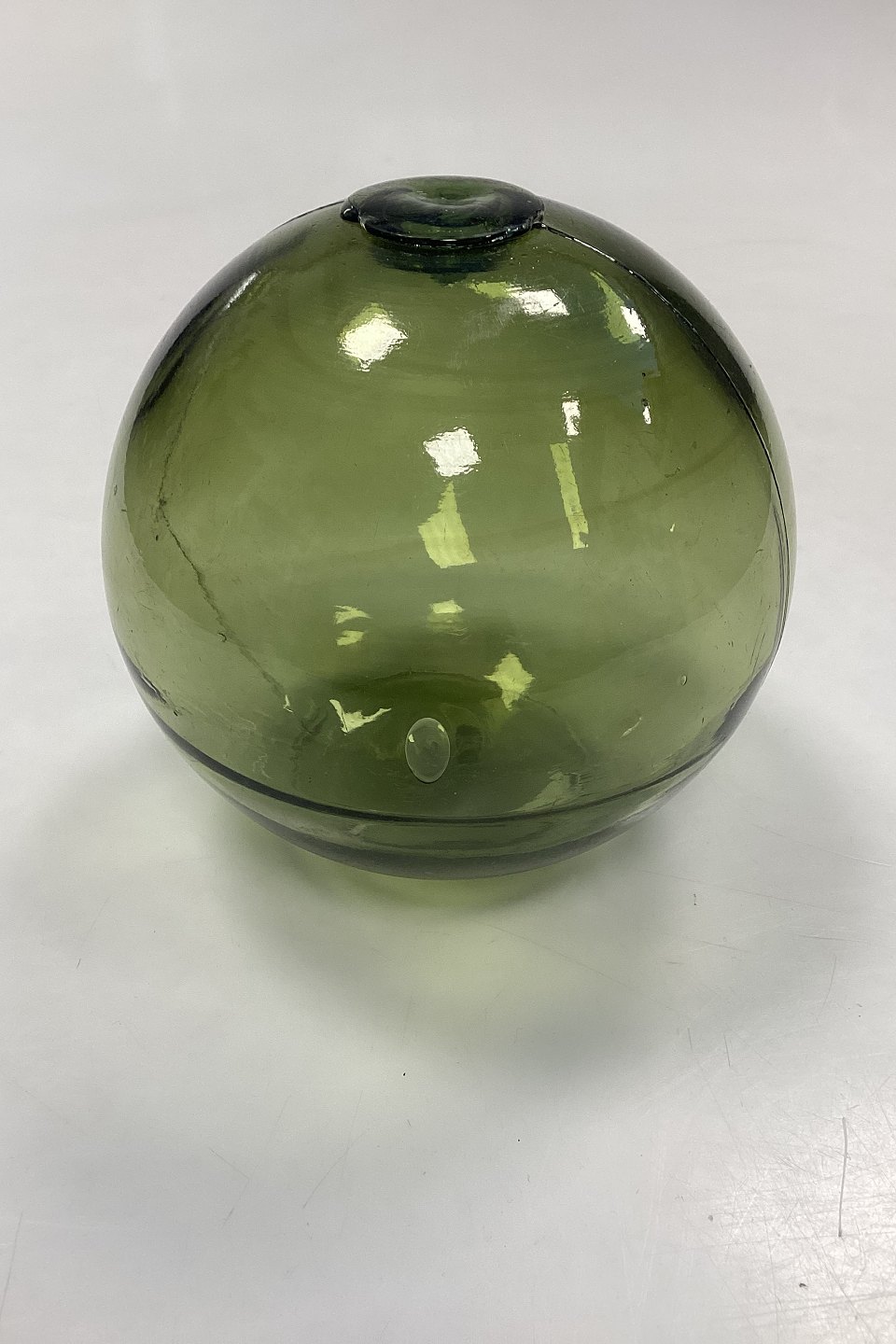 Holmegaard / Kastrup / Fyens Glass Works Decorative Ball, old. Also called fish balls or glass floats. Color: Olive green.