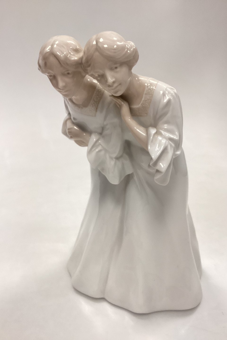 Royal Copenhagen Art Nouveau Figurine - Two Young Women No. 822. From around 1910, and is in very good condition. 2nd Quality with burning defect on sleeve, see photos.