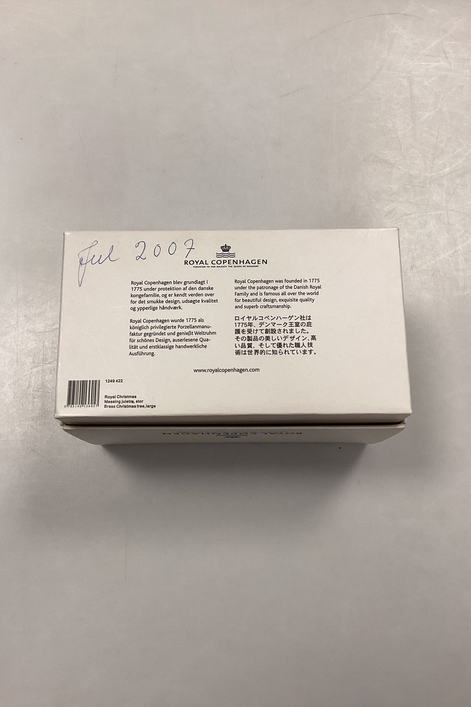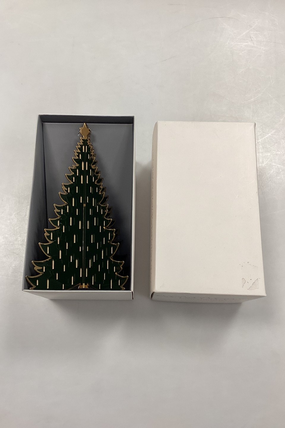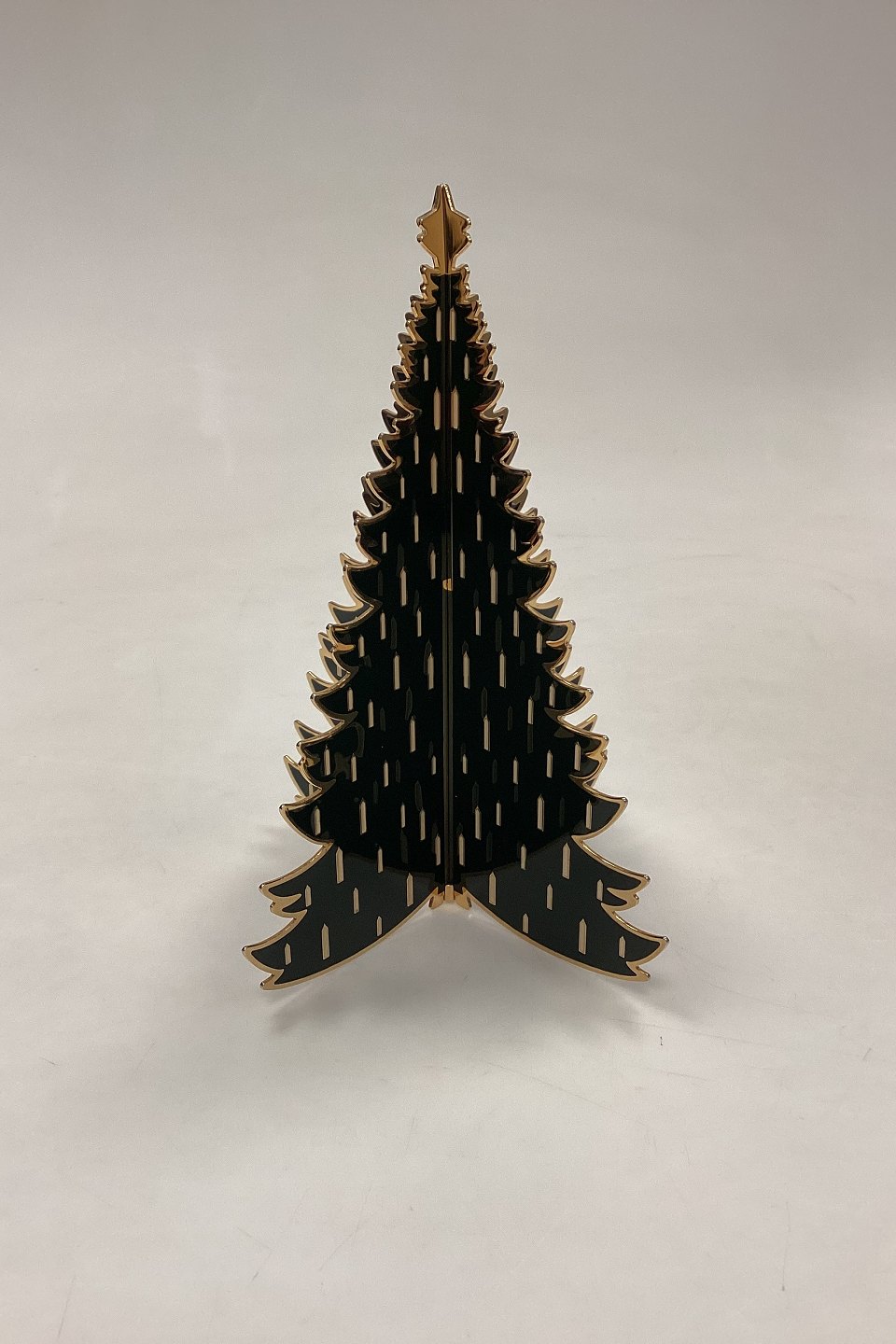 Royal Copenhagen Christmas Large Christmas Tree. Table decoration in brass with green enamel and white candles.