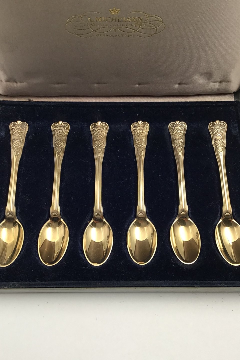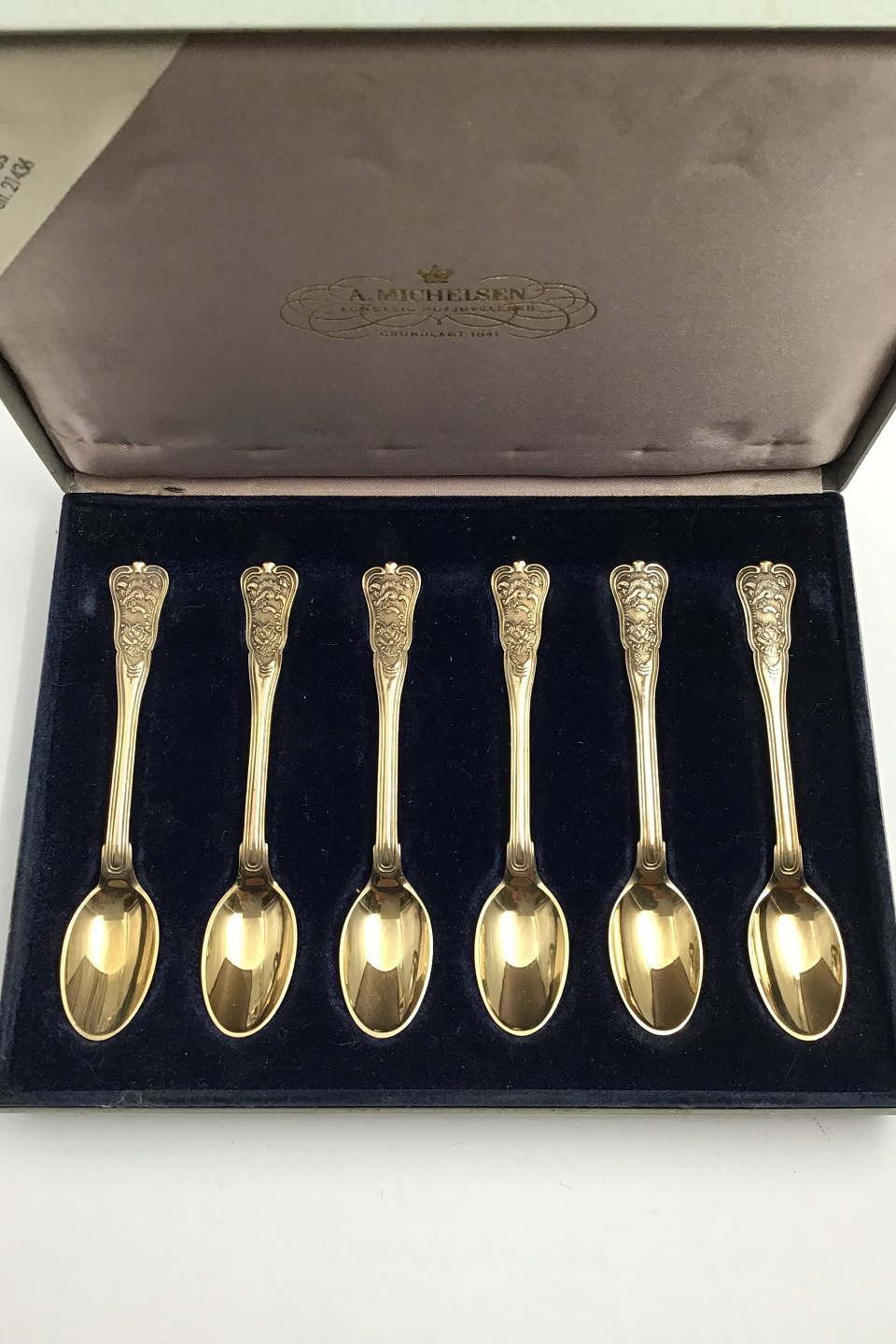Anton Michelsen Sterling Silver Rosenborg Mocha Spoon Set (6) Gilded