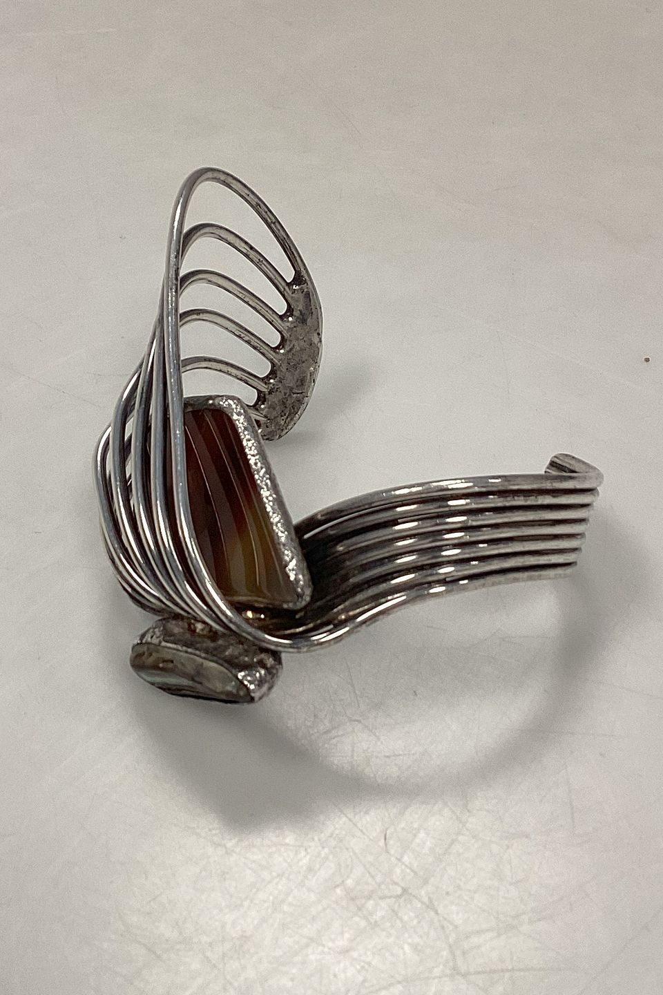 Jacob Hull Silver Plated open Bangle with 2 stones