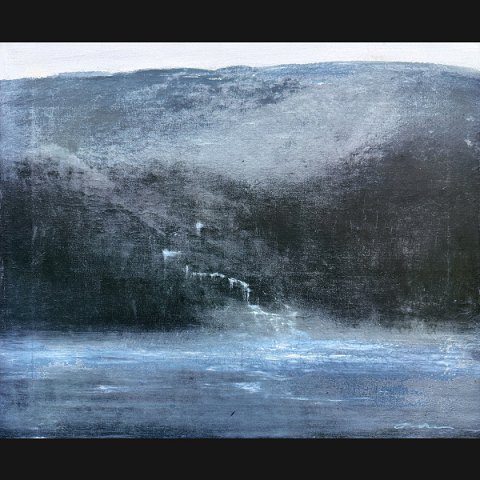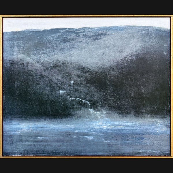 "Blå aften, Norge" Olie maleri på lærred. monteret i forgyldt ramme.