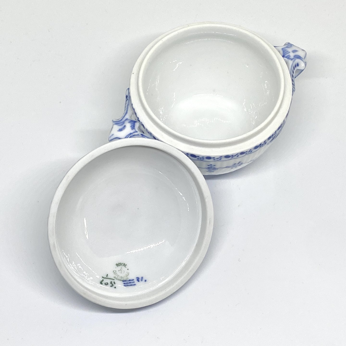 Itemnumber: 630271Royal Copenhagen/Kgl. Blue Fluted half lace. Sugar bowl with lid. Decoration number 1/6052 sorting. Dimensions: Ų 10 cm. H. 11 cm.