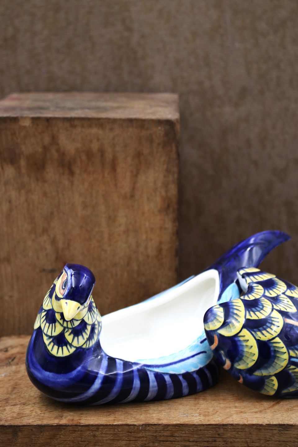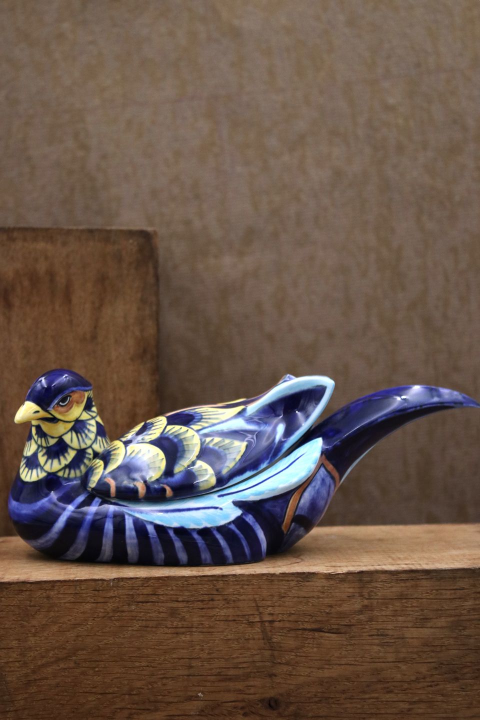 Blue Pheasant, hand painted Bonbonniere from Royal Copenhagen. Decoration number: 1737/180 - Lid. 1737/179. 1.sort.