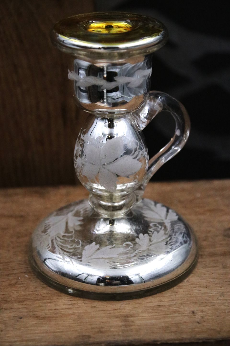 1800 tals lysestage med hank i fattigmandssølv (Mercury silver glass)