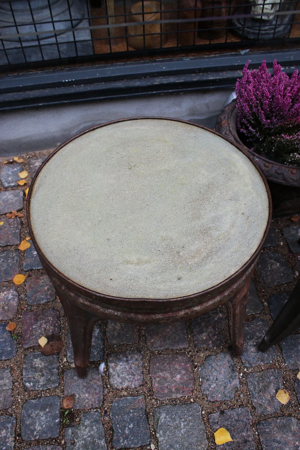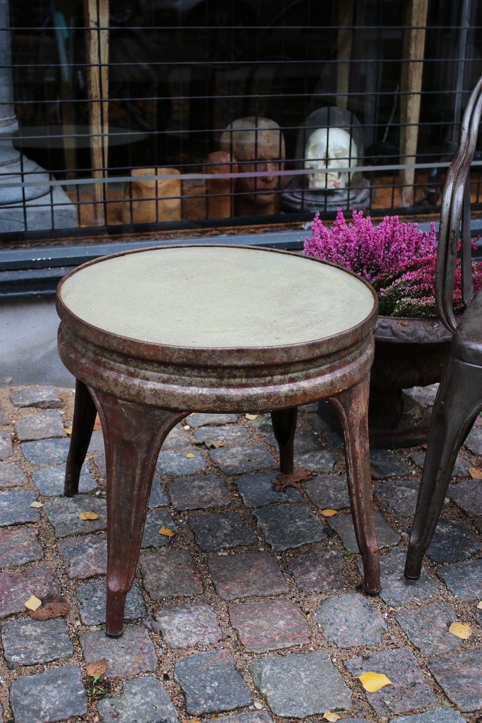 Gammelt fransk Tolix sofabord / sidebord i afpudset metal fra omkring 1930-40 med fantastisk fin patina og med støbt beton topplade.