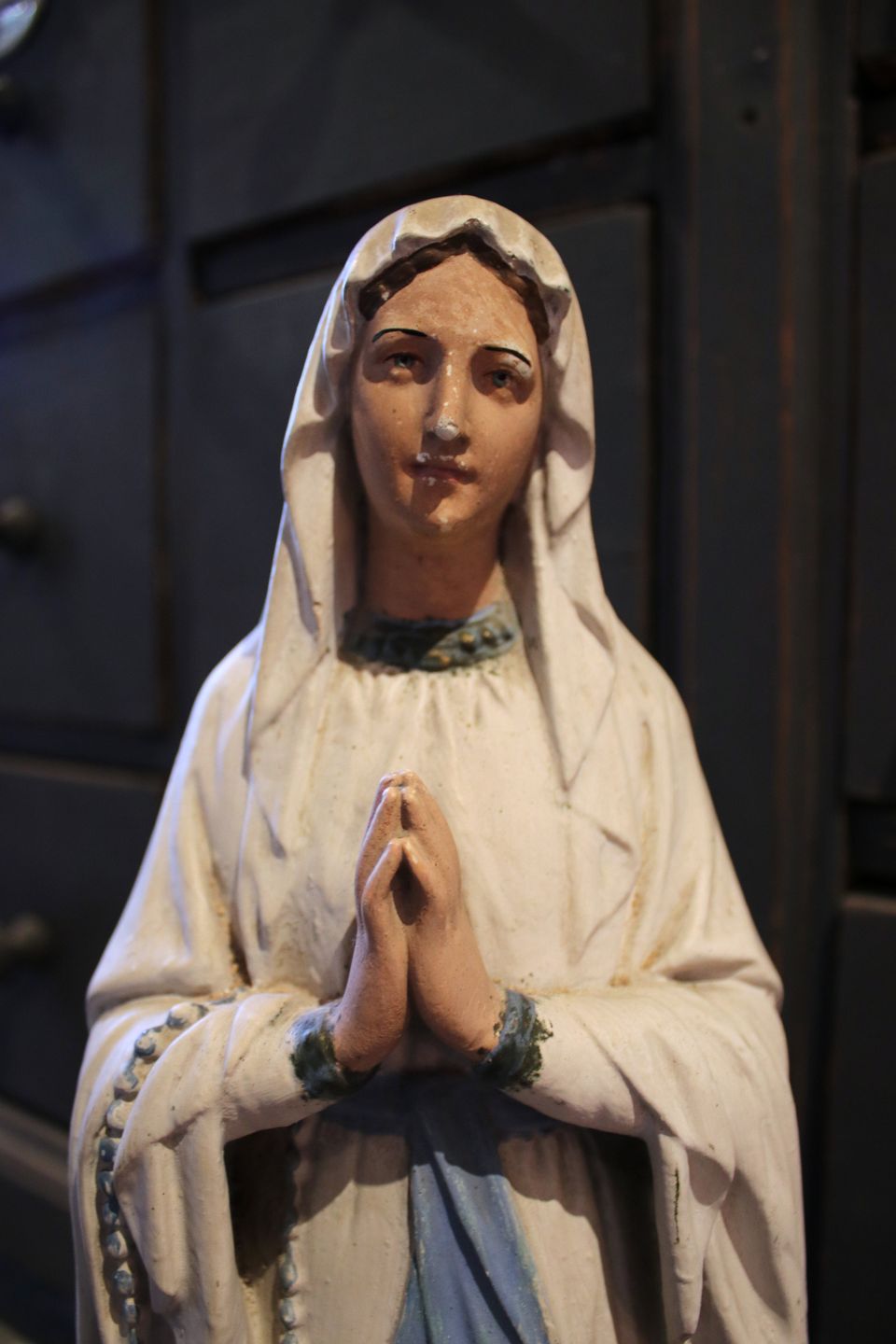 Fine, old French Madonna figure in painted plaster with a fine old patina. Height: 56cm.