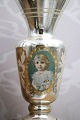 Antik, 1800 tals vase i fattigmandssølv med håndmalet portræt billede af en lille pige...