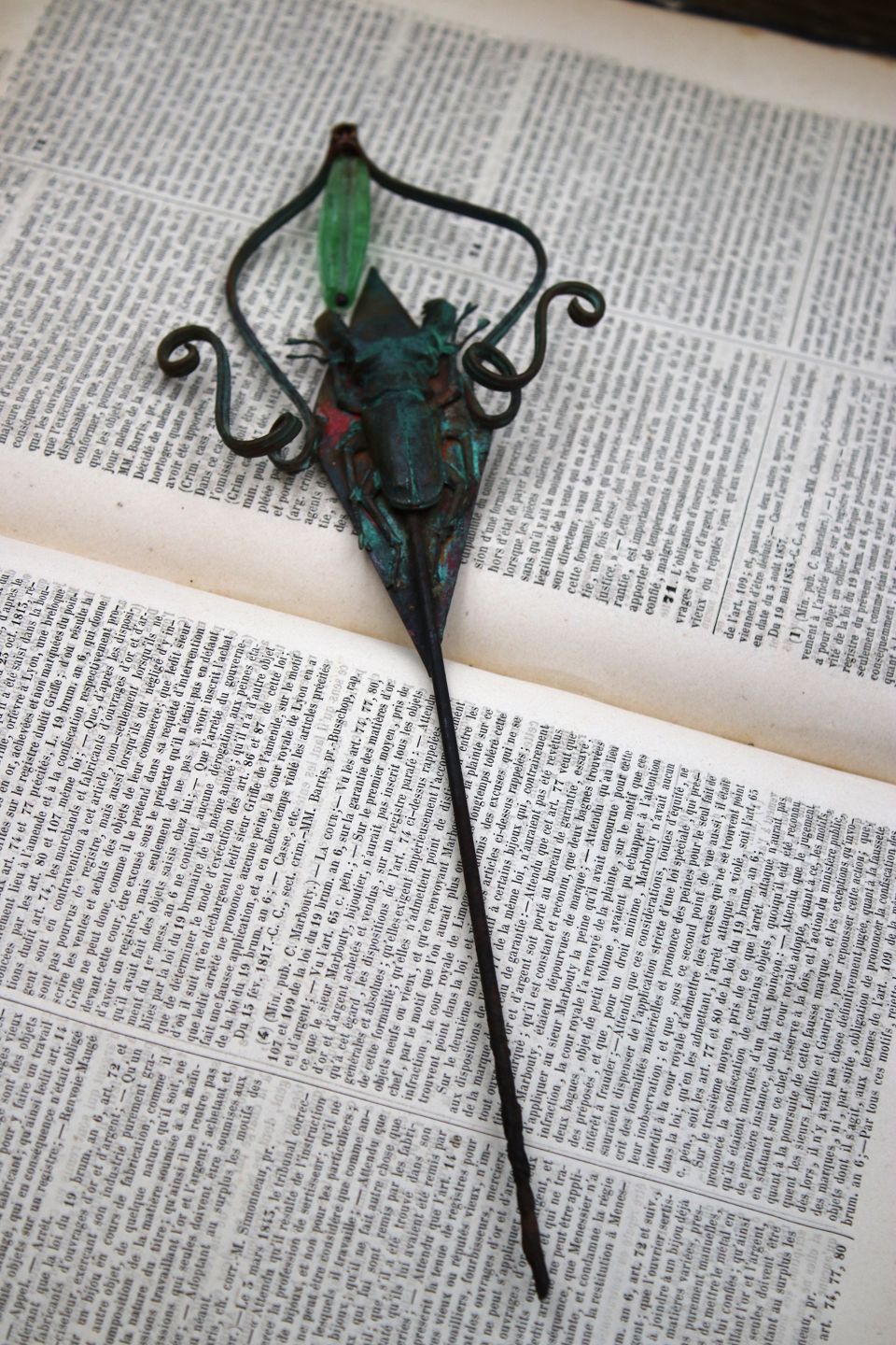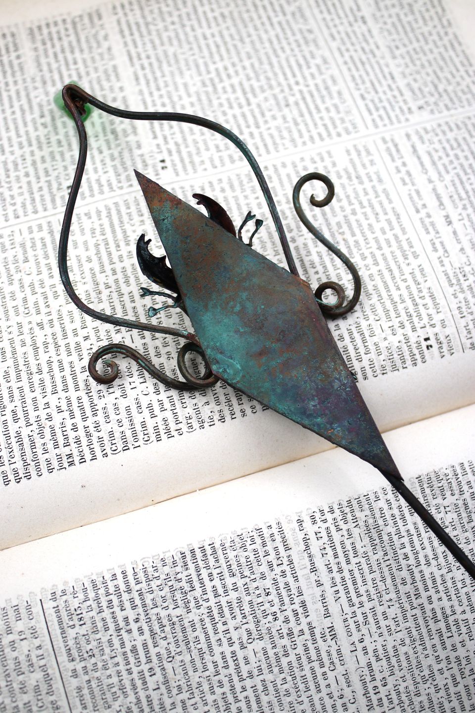 Unique flower stick in copper with glass bead and insect made by jewelry artist Torben Hardenberg...