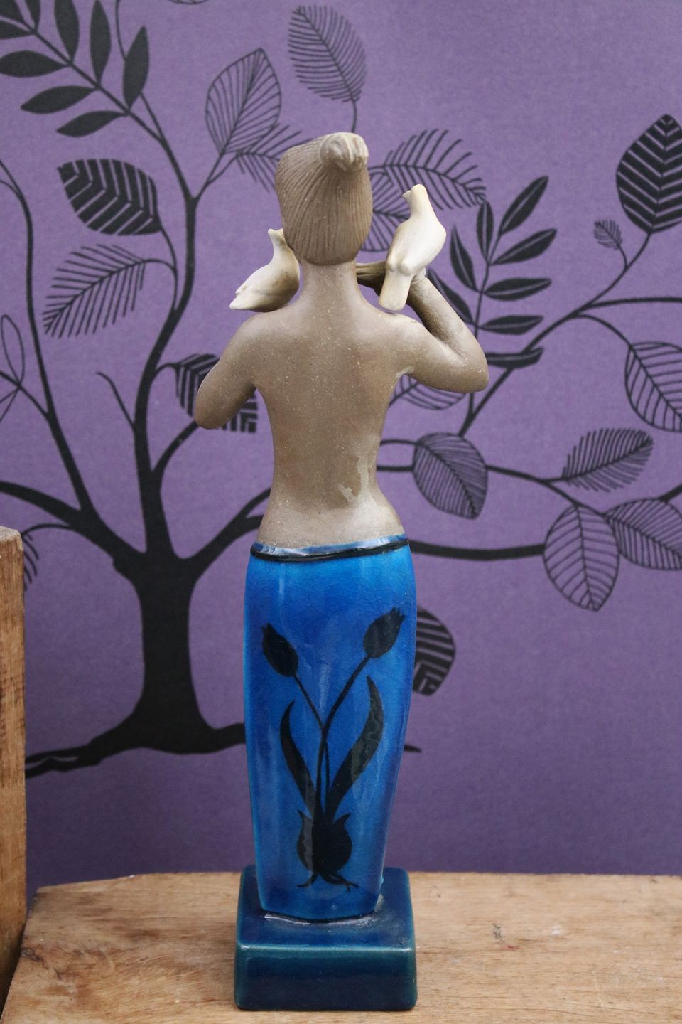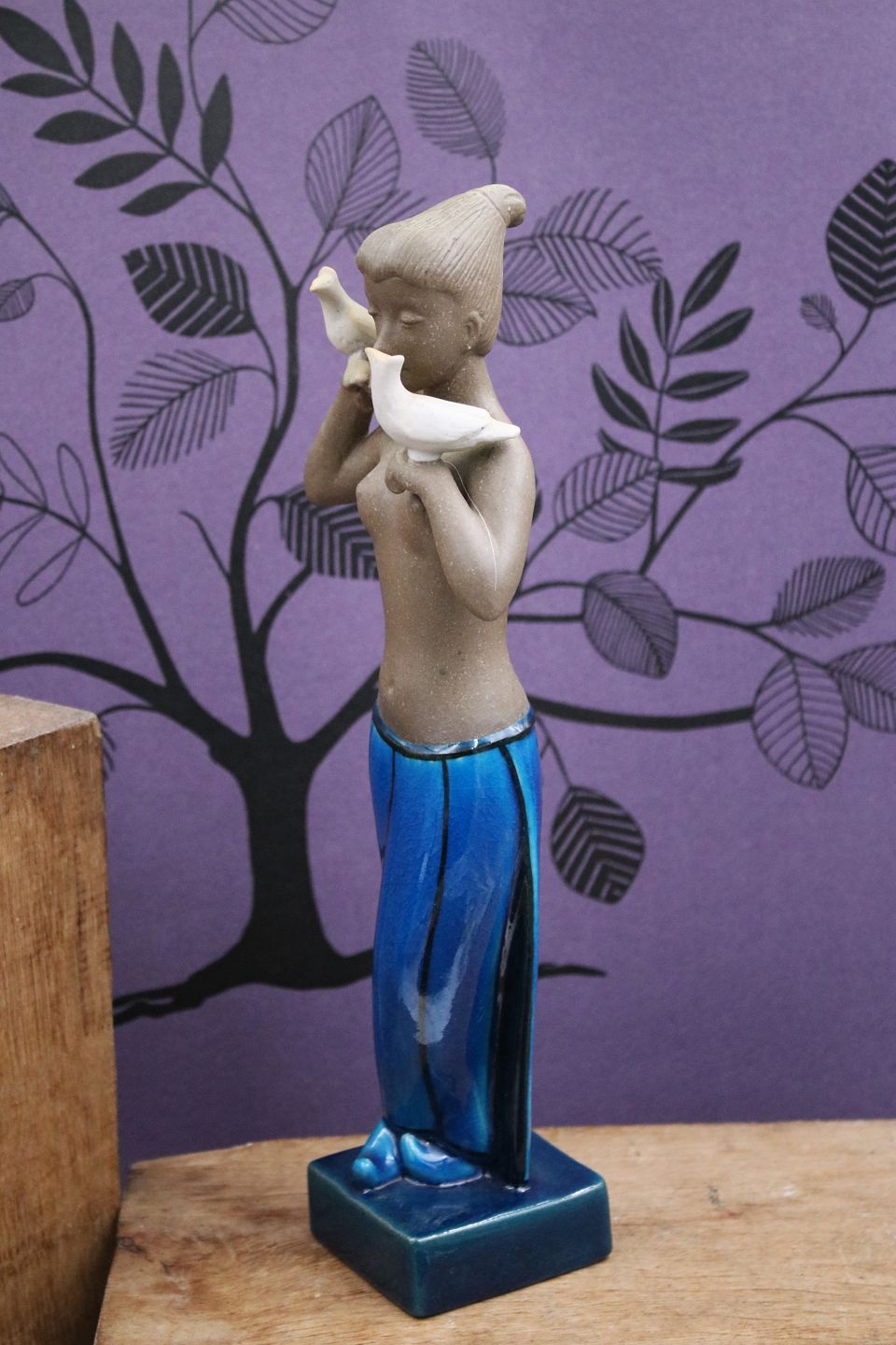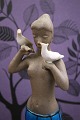 Johannes Hedegaard stentøjs figur af pige med duer produceret af Royal Copenhagen. H: 32cm. JH: 21319. 1.sort. Er i hel og i fin stand.