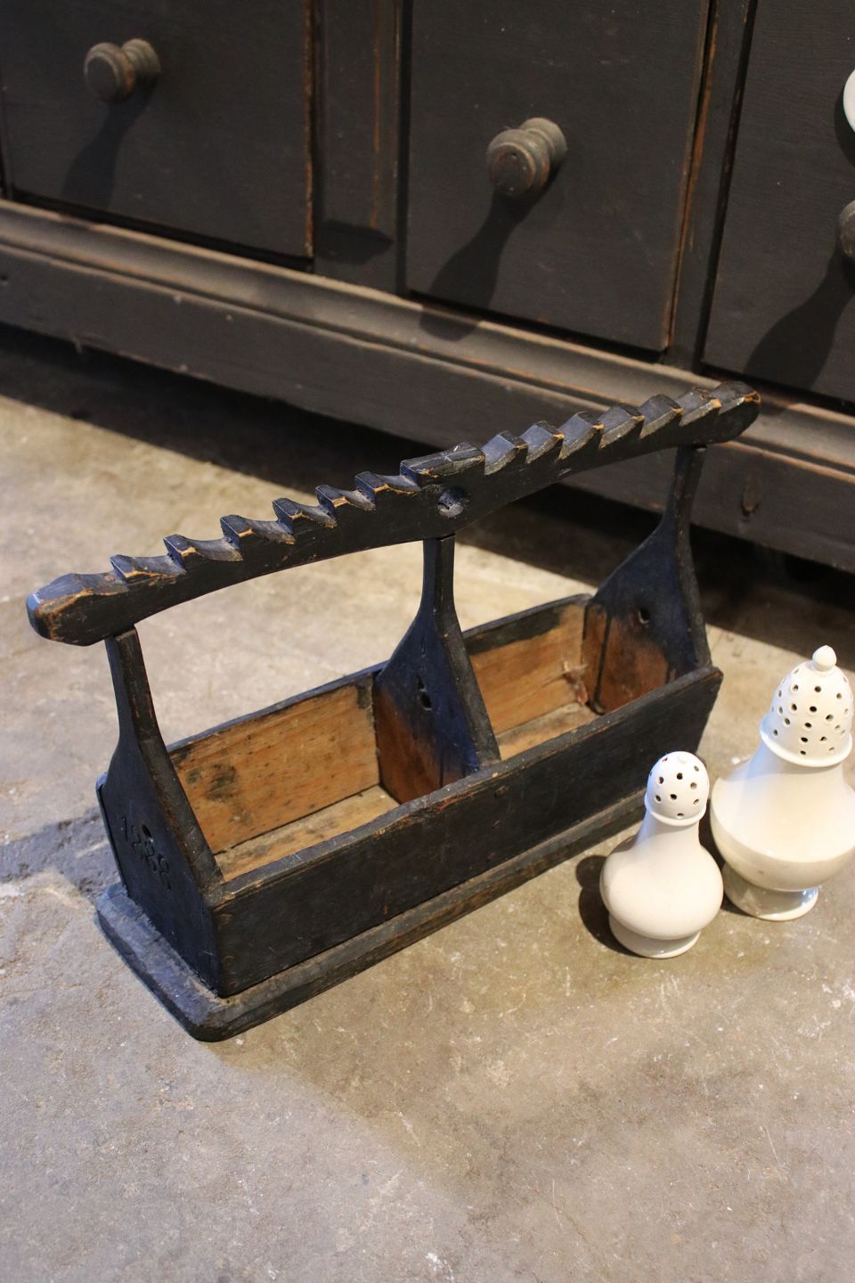 Gammel 1800 tals svensk opbevarings kasse med original farve og håndtag til opbevaring af småting.