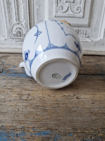 Royal Copenhagen Musselmalet riflet tekande med bambus hank uden låg No. 140, 1. sortering Højde 11,5 cm. Længde 18 cm.