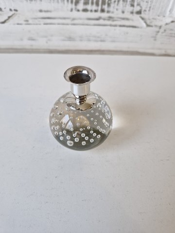 Kugleformet glaslysestage med lyspibe i sterlingsølv