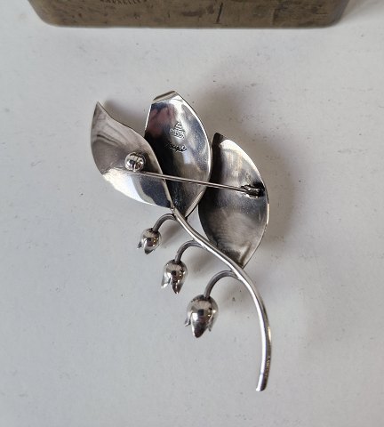 A. Michelsen silver brooch in the shape of a lily of the valley, the three small flowers are movable. Stamp: AM - Sterling - Denmark Measurements 3 x 7 cm.
