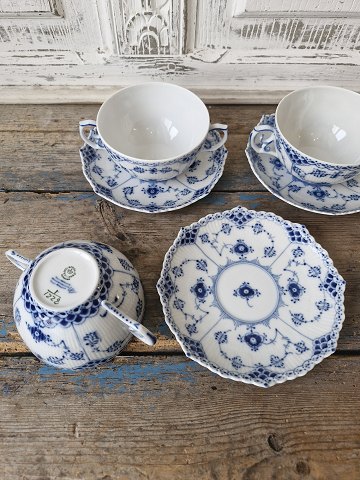 Royal Copenhagen Blue Fluted full lace bouillon cup No. 1228 Factory first Measurements of the cup itself: Height 6 cm. Diameter 11 cm. Measurements of the saucer: 16.5 cm. Stock: 5