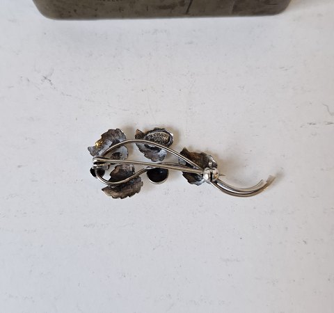 Vintage sølv broche i form af gren med små blade af Hermann Siersbøl Stemplet: HS - Sterling - Denmark Mål 2 x 5,2 cm. Vægt 3,8 gram.