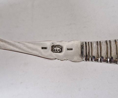 Stor fiskespade i sølv med perlemors håndtag. Wold Petersen 1717-63 Haderslev