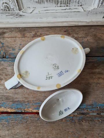 Royal Copenhagen Musselmalet riflet oval tekande No. 255, 2. sortering - kanden vipper lidt Højde 15 cm. Længde 27 cm. Produceret mellem 1923-35