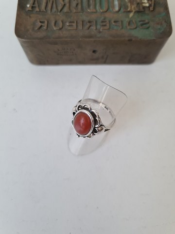 Sølv ring i skønvirkestil med rav perle