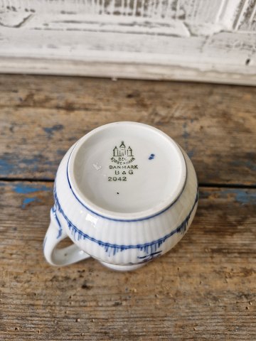 B&G Blue Fluted Hotel porcelain cream jug with logo "Konditori Bristol Zola" No. 2042, Factory first Height 10.5
