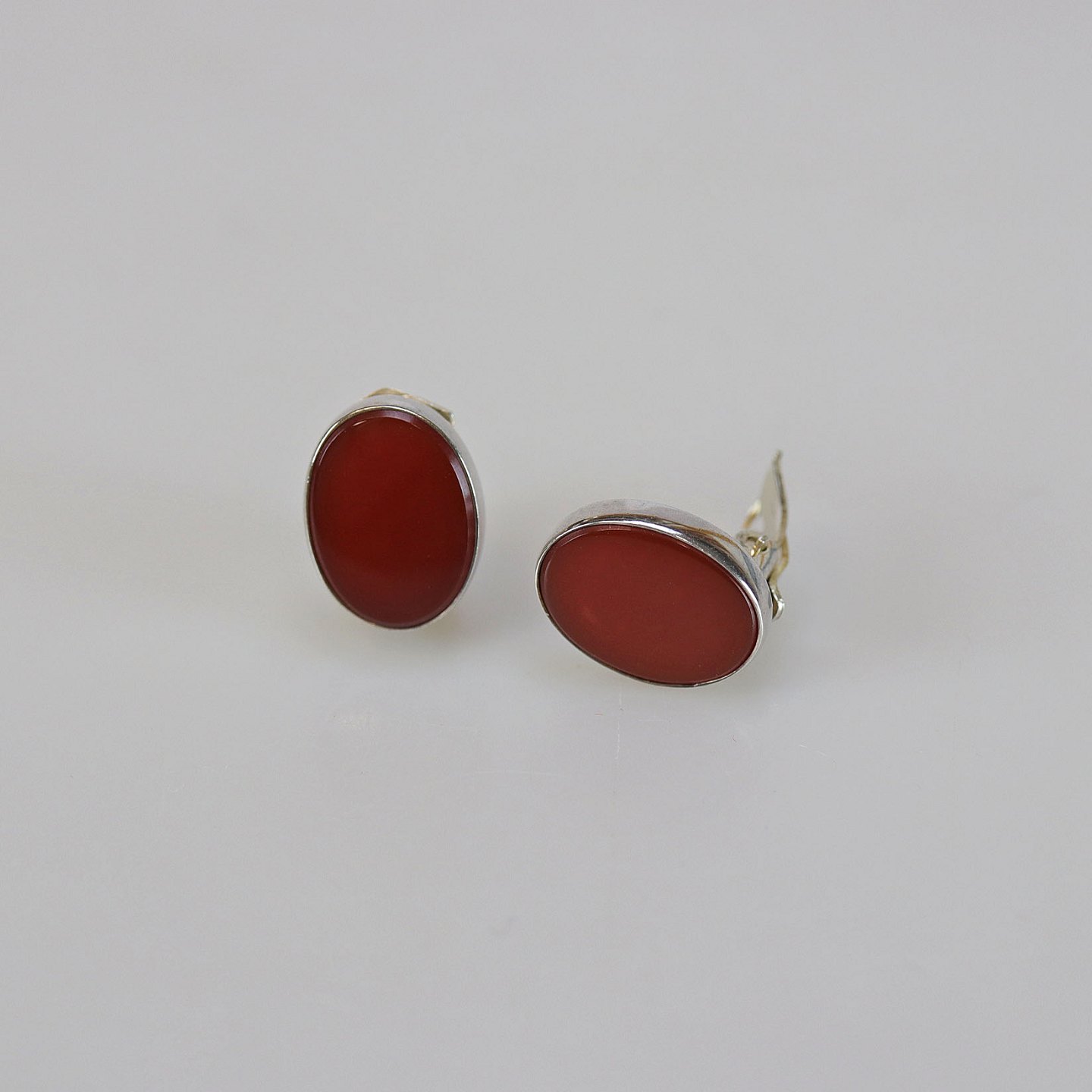 Øreclips med vinrød sten.